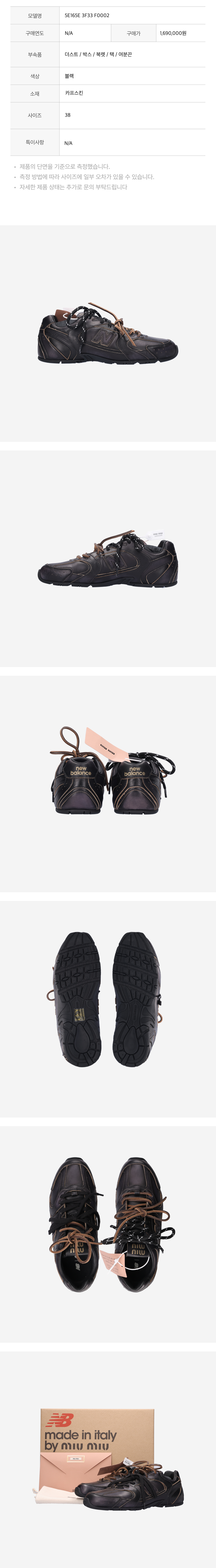미우미우 x 뉴발란스 530 스니커즈 카프스킨 블랙 38