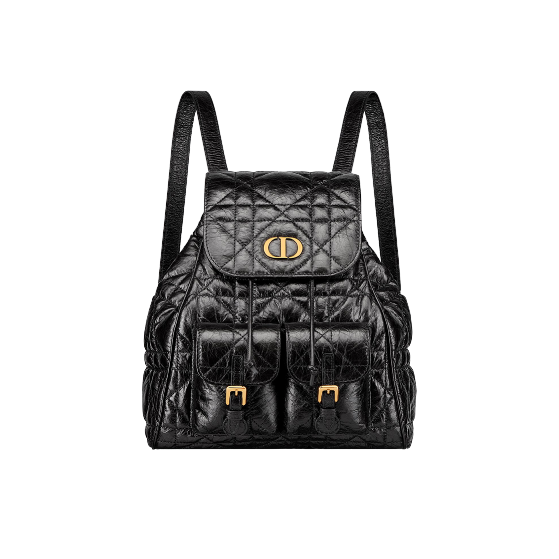 Dior Caro Medium Backpack Macrocannage Crinkled Calfskin Black