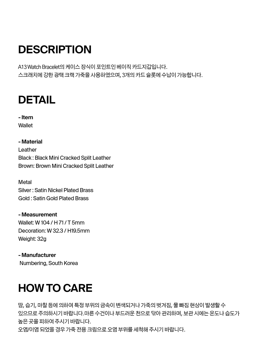 넘버링 #1050 크랙 레더 카드 홀더 브라운