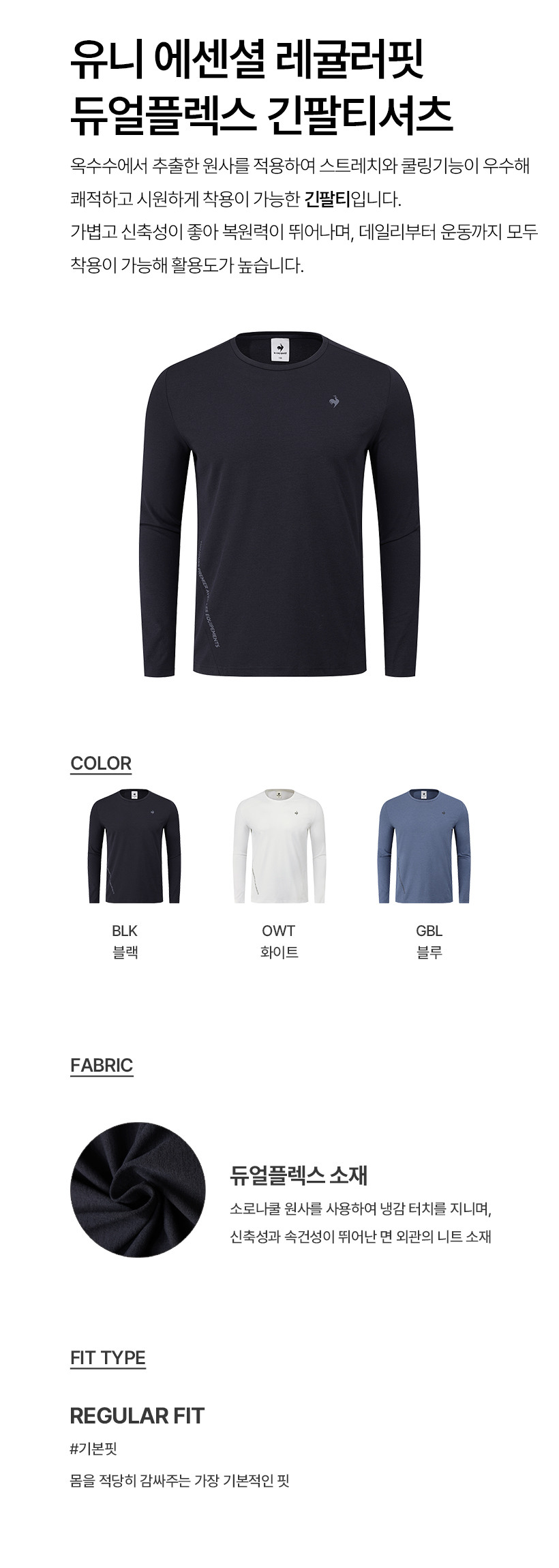 르꼬끄 스포르티브 유니 에센셜 레귤러핏 듀얼플렉스 긴팔티셔츠 - 화이트(QQ313ERL71)