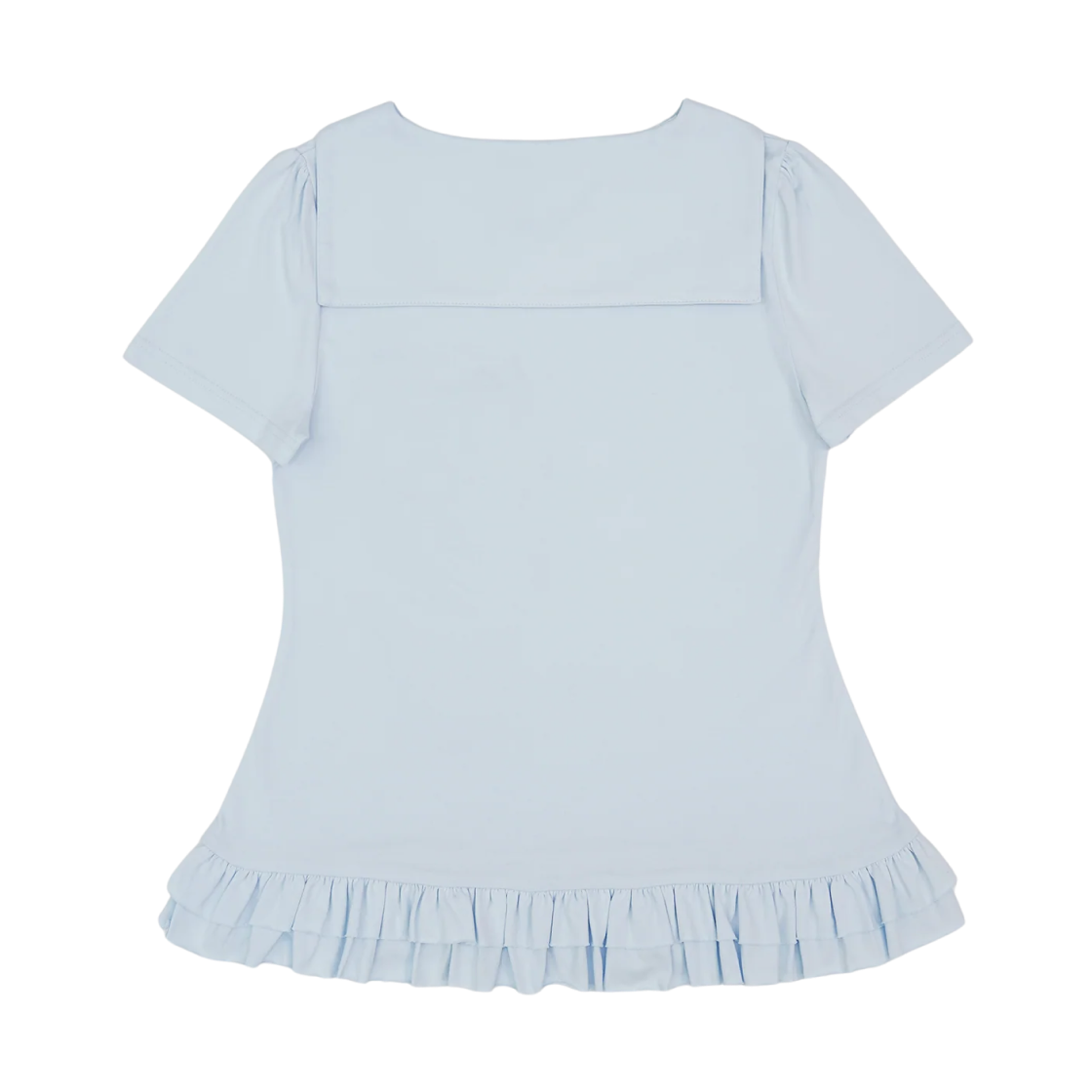 (W) Tie.Me Sailor Collar Cream T-Shirt Sax