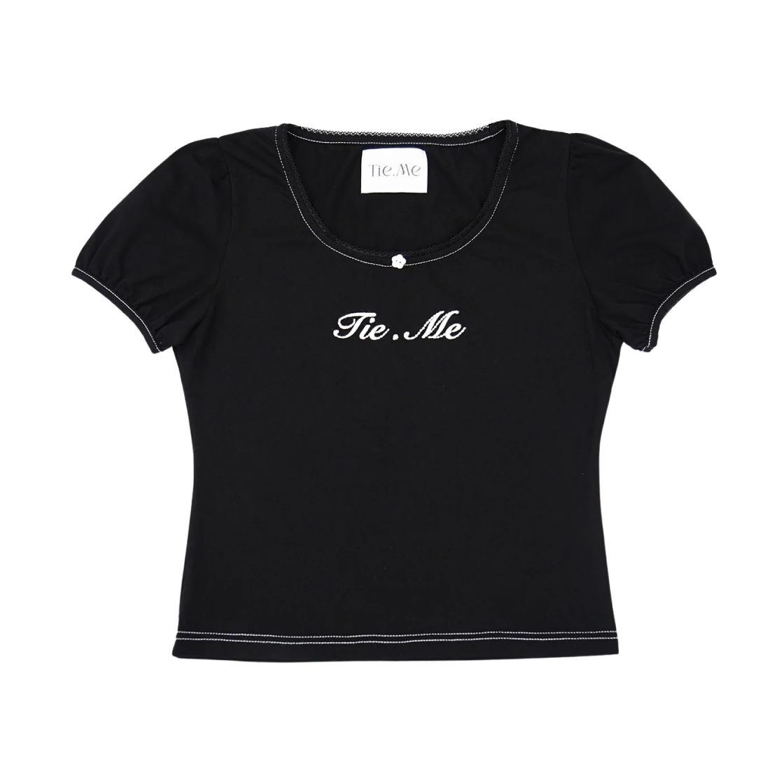 (W) Tie.Me Color Stitch Logo T-Shirt Black