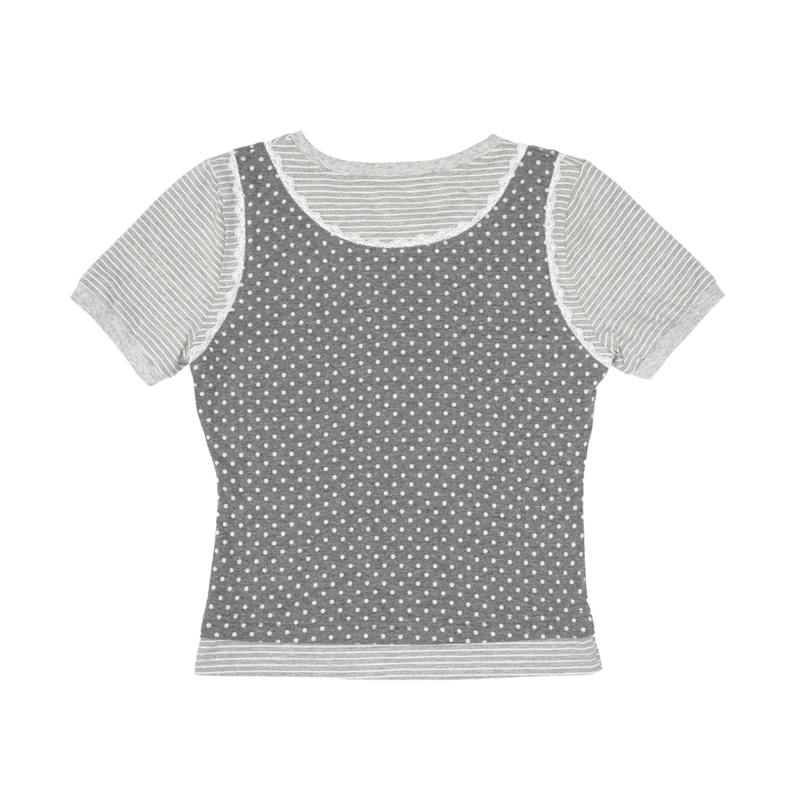 (W) Tie.Me Button Up Layered T-Shirt Gray