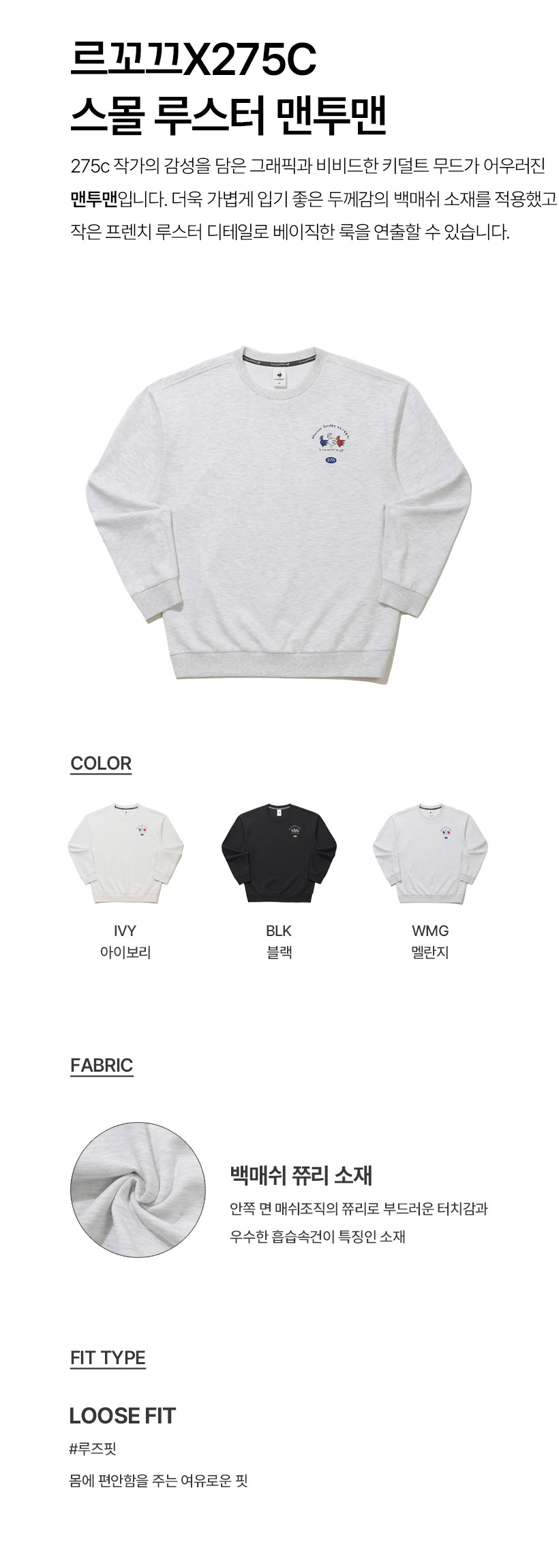 르꼬끄 스포르티브 르꼬끄X275C 스몰 루스터 맨투맨 - 블랙(QQ323XFS71)