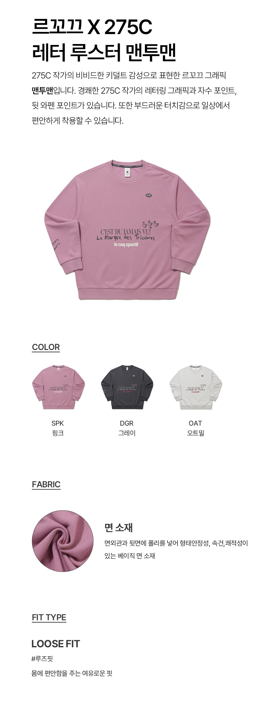 르꼬끄 스포르티브 르꼬끄X275C 레터 루스터 맨투맨 - 오트밀(QQ323XFS72)