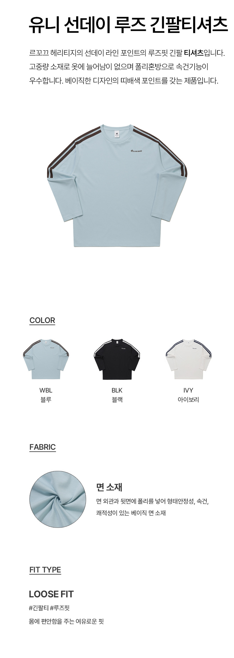 르꼬끄 스포르티브 유니 선데이 루즈 긴팔티셔츠 - 아이보리(QQ323LRL82)