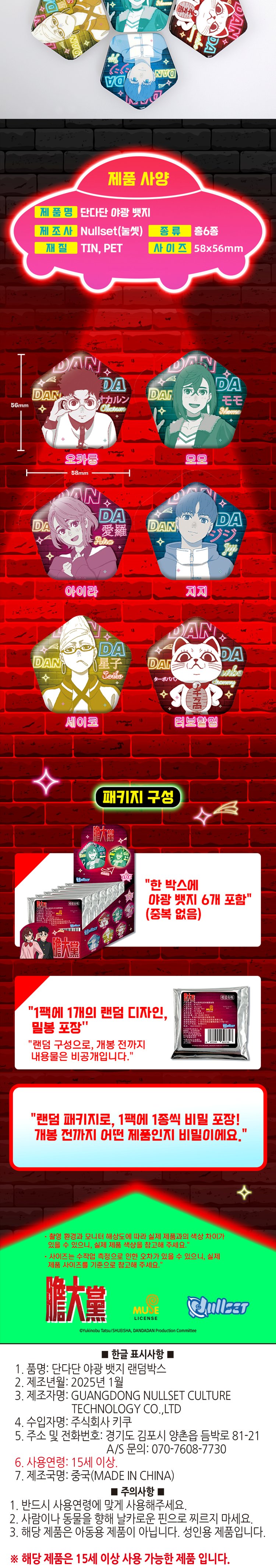 단다단 야광뱃지 6개가 랜덤으로 들어있는 박스 상품