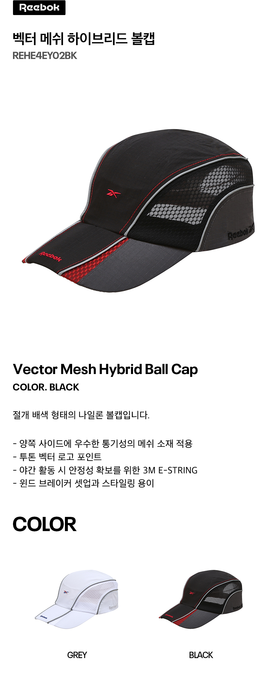 리복 벡터 메쉬 하이브리드 볼캡 블랙