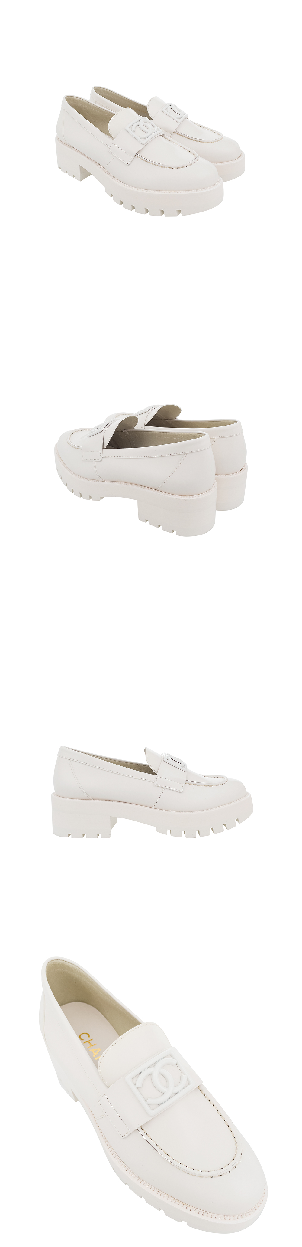 샤넬 24A 스퀘어 CC로고 로퍼 38 아이보리
