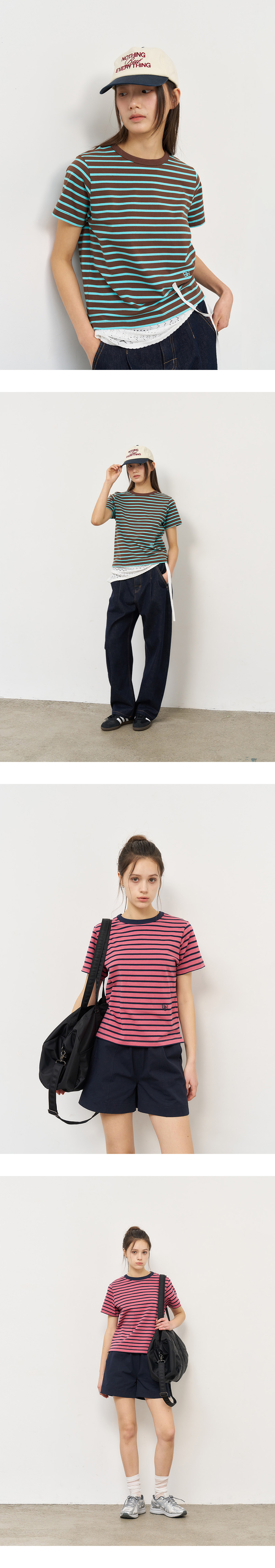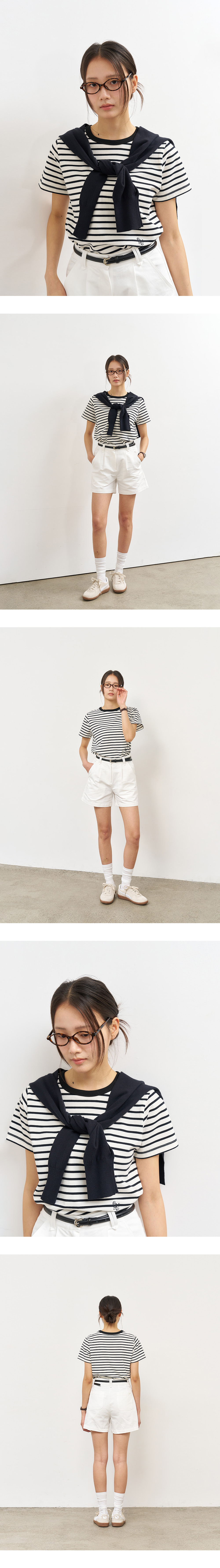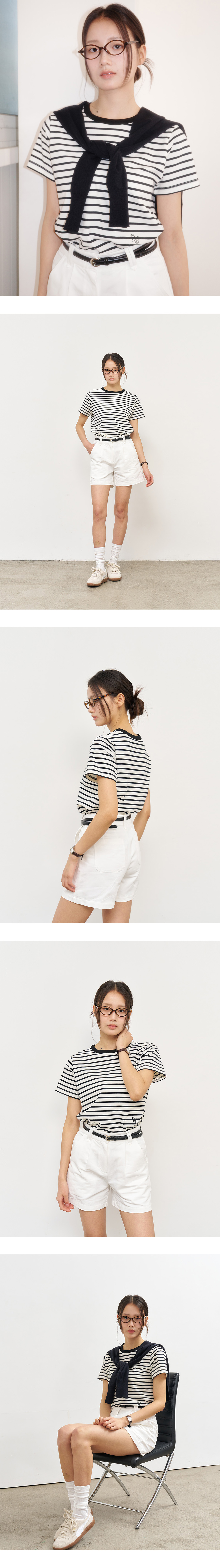 제너럴아이디어 우먼 레귤러 스트라이프 반팔티 화이트