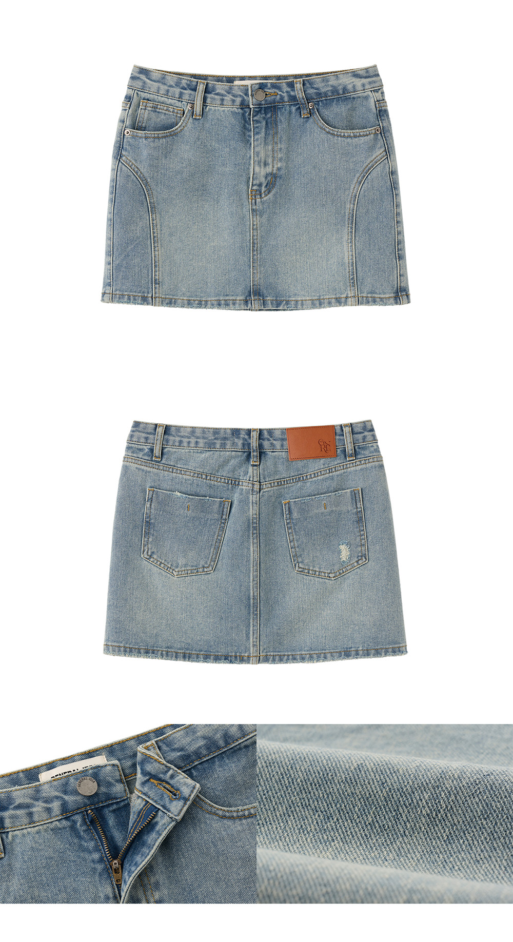 제너럴아이디어 우먼 로우라이즈 워싱 데님 미니스커트 빈티지 블루