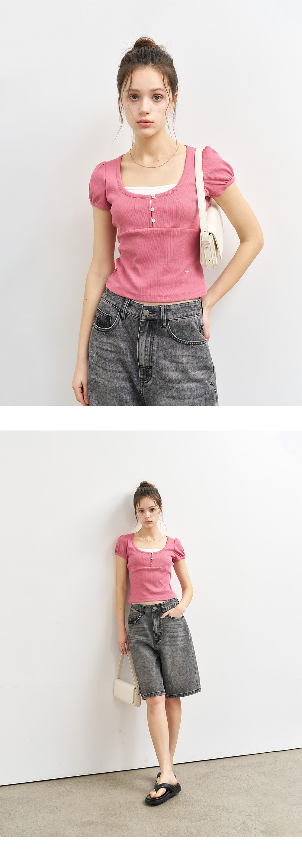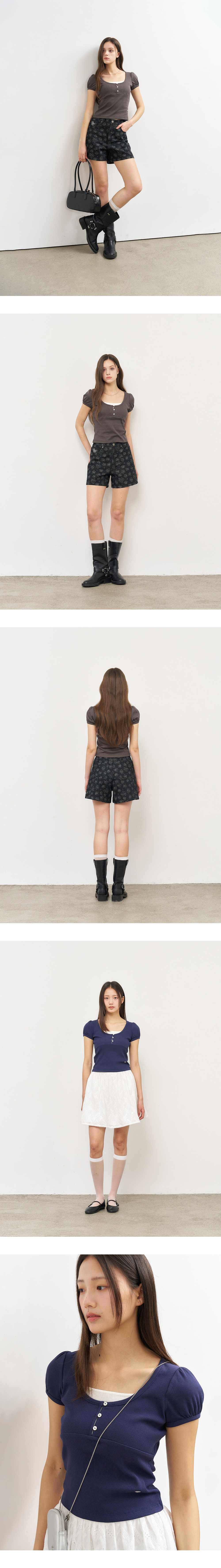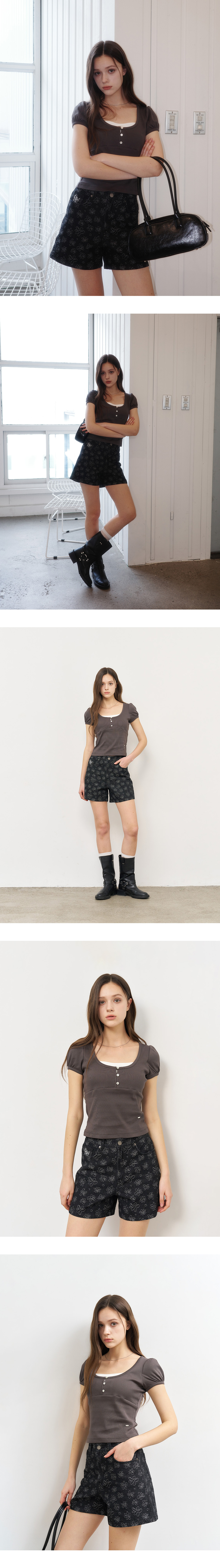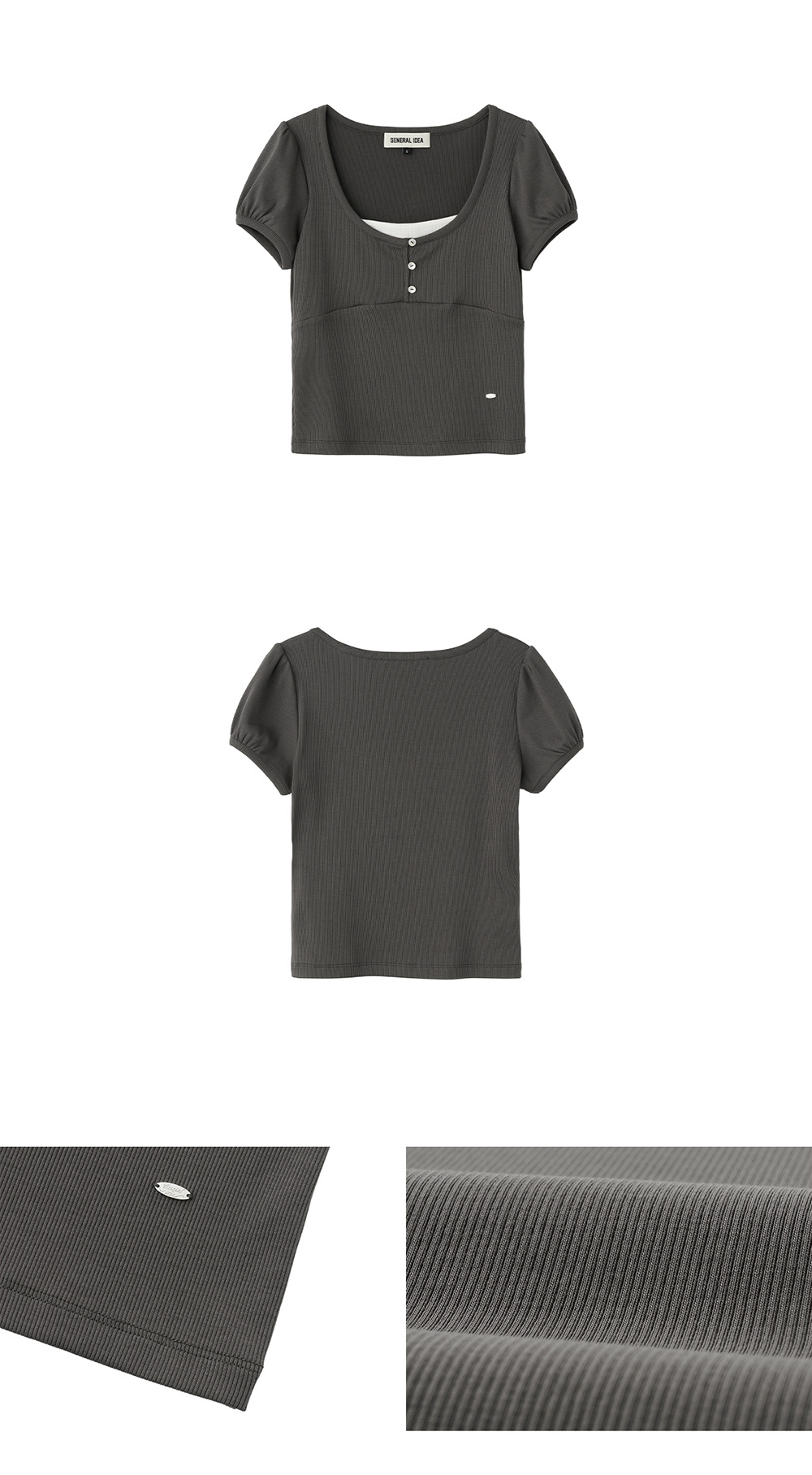 제너럴아이디어 우먼 버튼 레이어드 반팔티 차콜