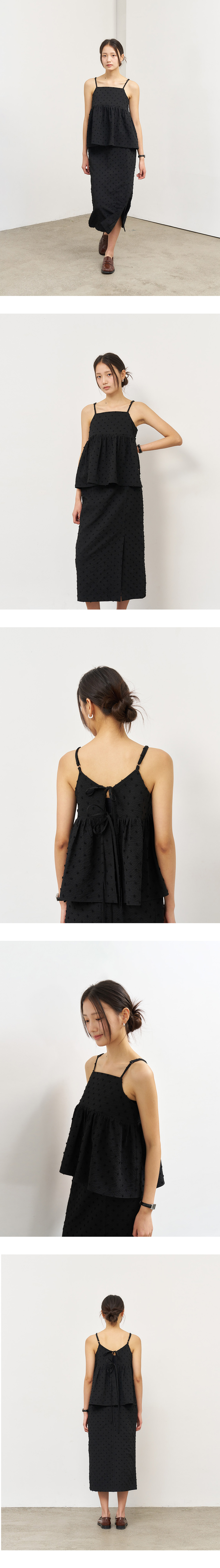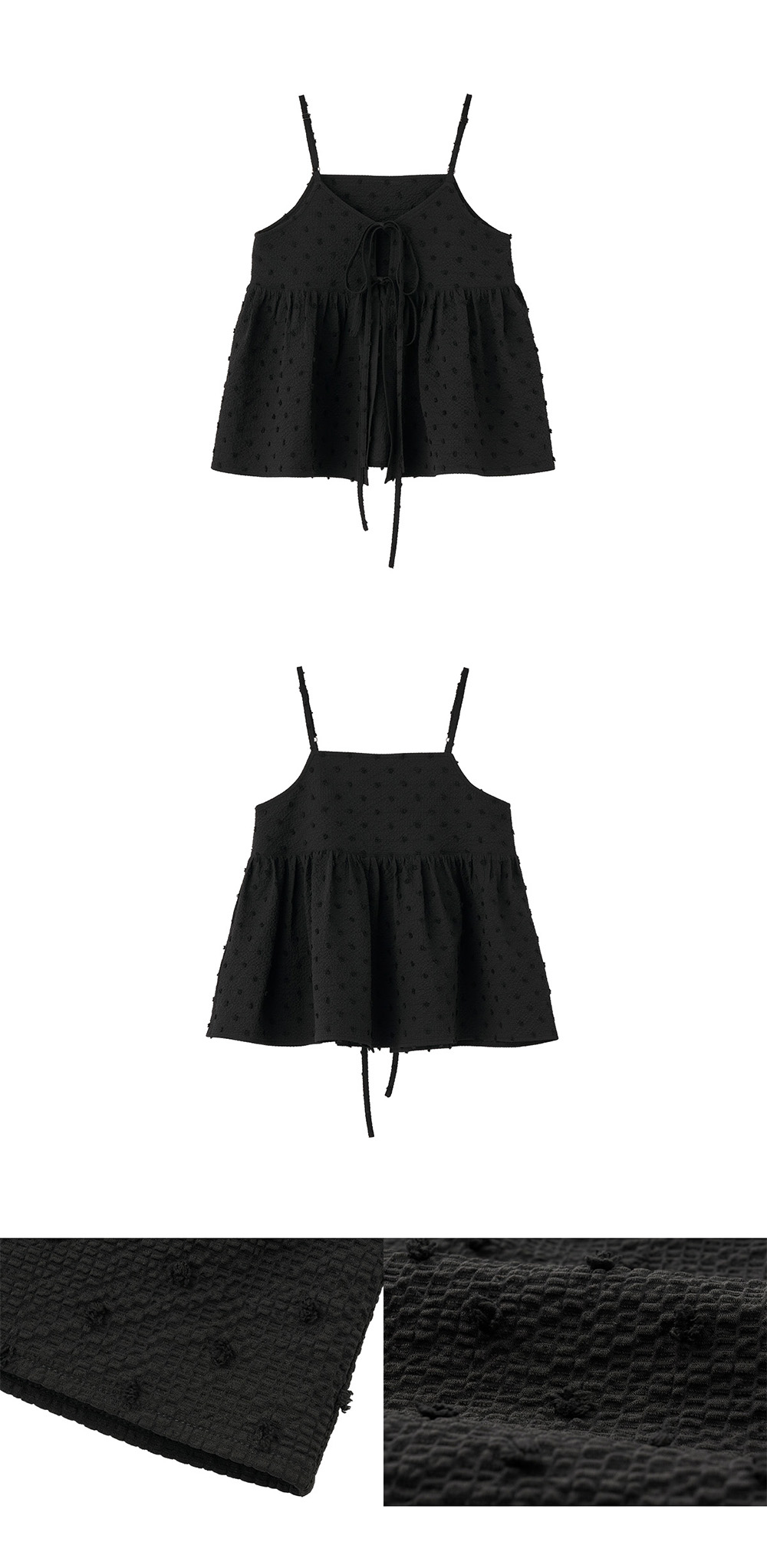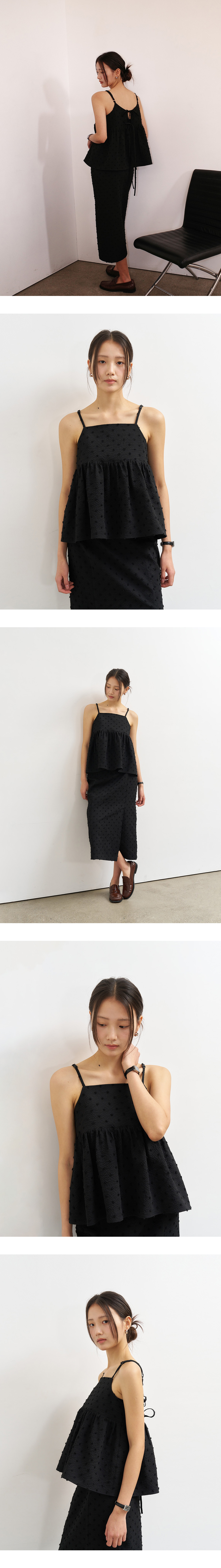 제너럴아이디어 우먼 텍스처드 버블 슬리브리스 블라우스 블랙