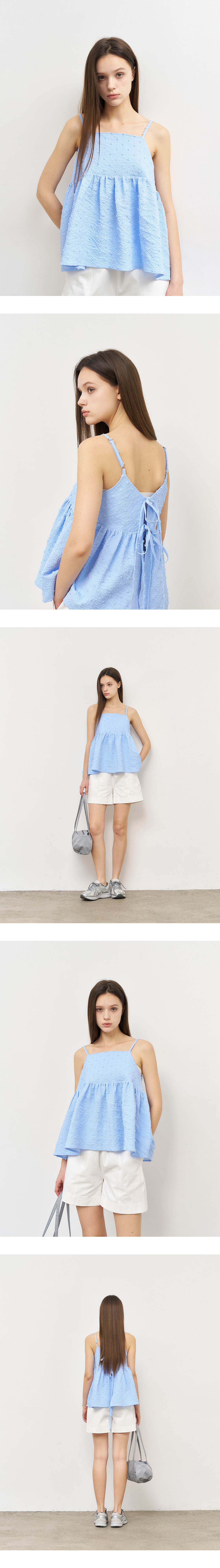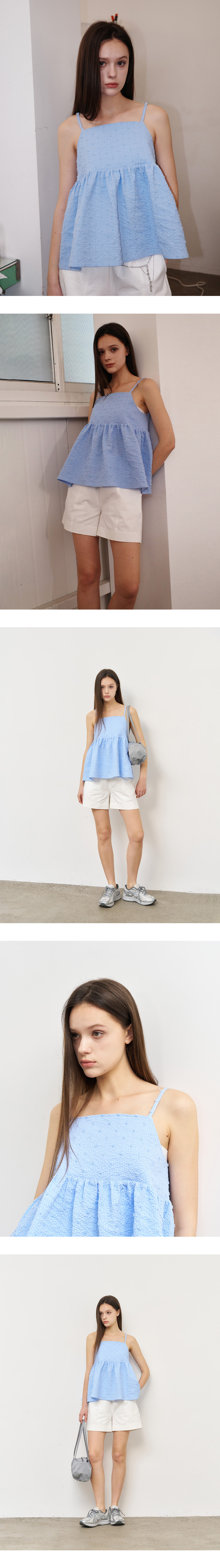 제너럴아이디어 우먼 텍스처드 버블 슬리브리스 블라우스 블루