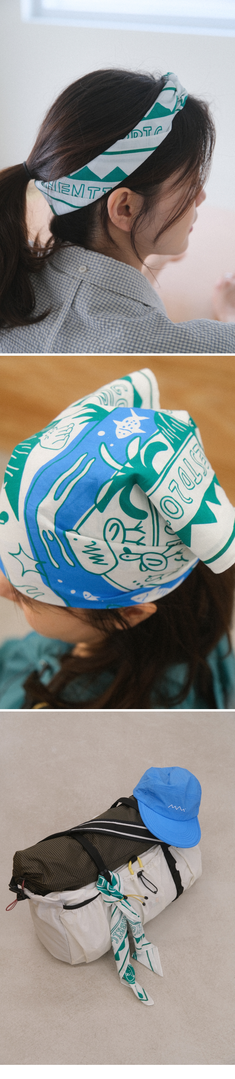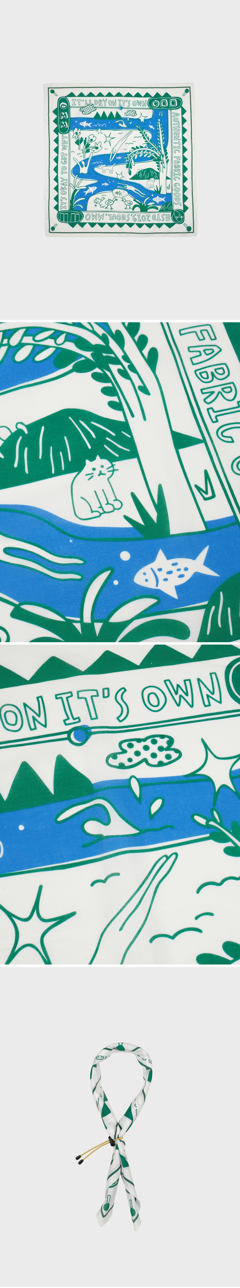 에메모 거북이 로고를 시작으로 많은 작업을 함께 하고 있는 아하킴(AHA.KIM)의 아트워크가 담긴 에메모 반다나 - 가볍고 부드러운 촉감과 우수한 통기성으로 빠른 흡수와 건조가 특징 - 패키지에 포함된 스트링은 다양하게 활용 가능 - 일회성이 아닌 재활용이 가능하며 선물용으로도 적합한 패키지 구성 손목에 감아 땀을 닦거나, 목에 둘러 체온을 유지하거나, 머리띠로도 사용할 수 있는 당신의 일상에 함께. made in seoul fabric : cotton 100% 60수 size : 55 x 55cm (± 2cm) - 중성 세제를 사용하여 찬물에 가볍게 손세탁 해주세요. (건조기, 표백제 X) - 모니터, 휴대기기의 해상도와 컬러에 따라 이미지의 색상에 차이가 있을 수 있습니다. - 공간 조명의 색온도 주광색, 주백색, 전구색에 따라 제품 컬러가 다르게 보일 수 있습니다. - 측정 위치에 따라 실측 오차가 있을 수 있습니다.