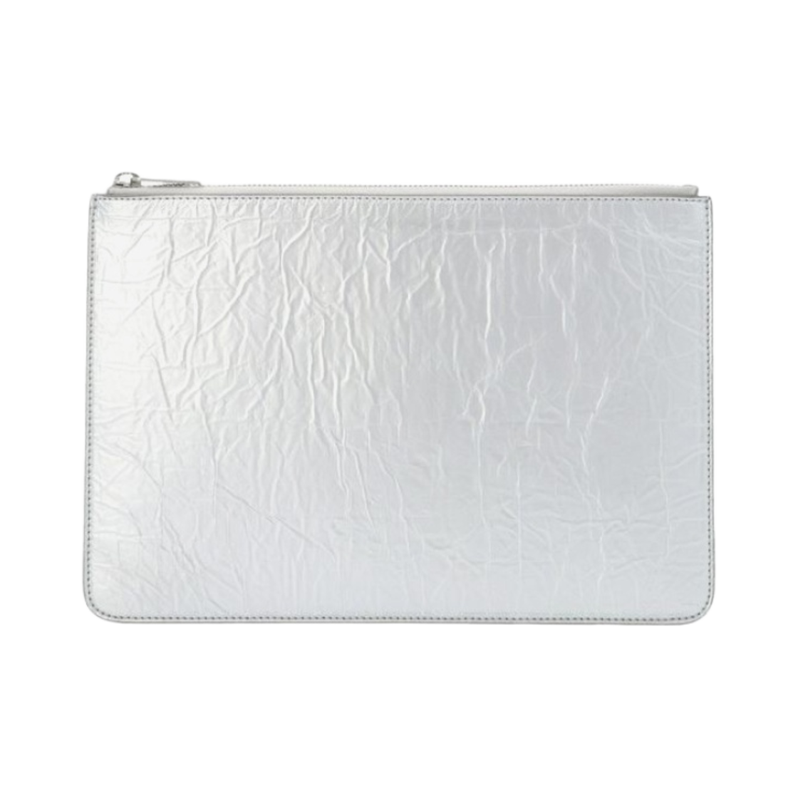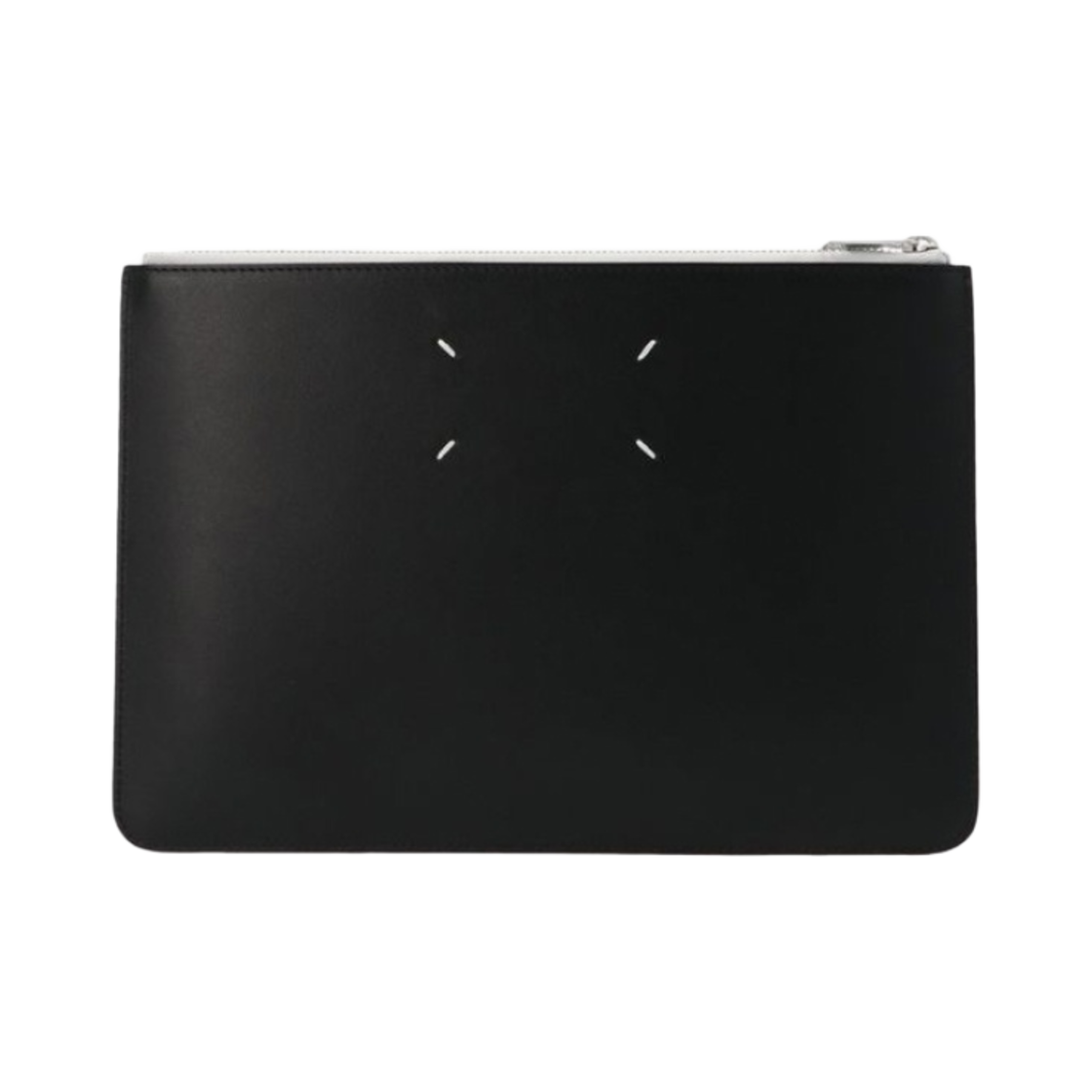 Maison Margiela Crinkle Leather Four Stitches Zipped Pouch Silver Black