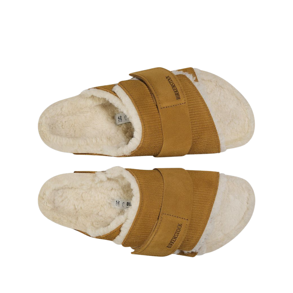 Birkenstock Kyoto Shearling Suede Leather Fur Corduroy Cork Brown - Regular