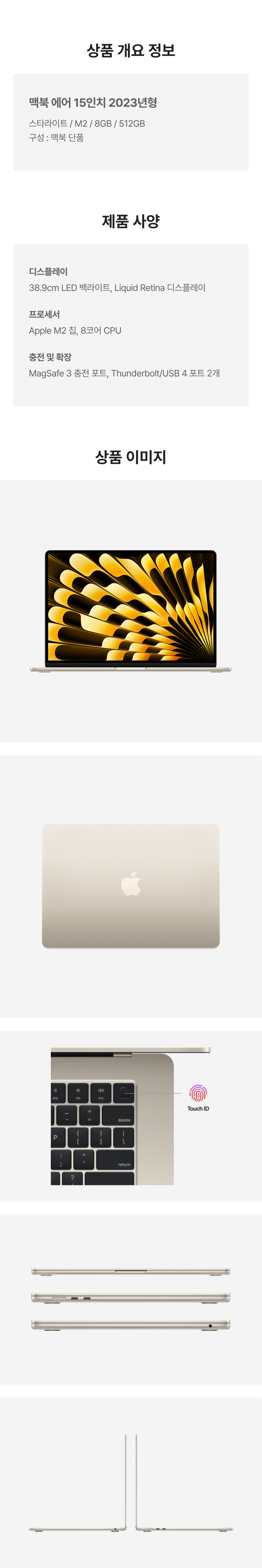 [S등급] 리퍼비시 2023 맥북 에어 15 M2 512기가 SSD 8기가 램 스타라이트