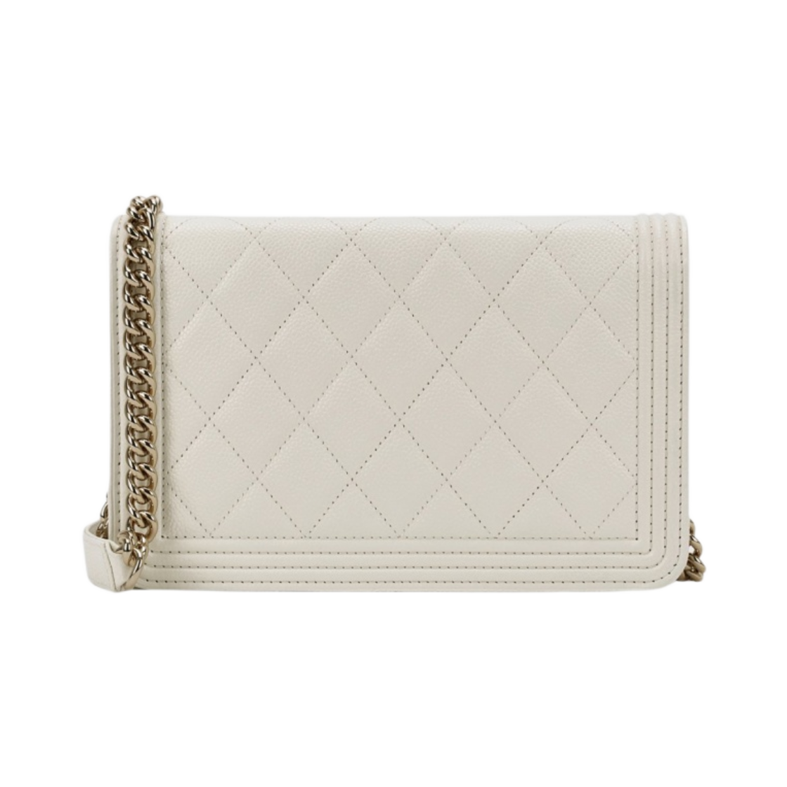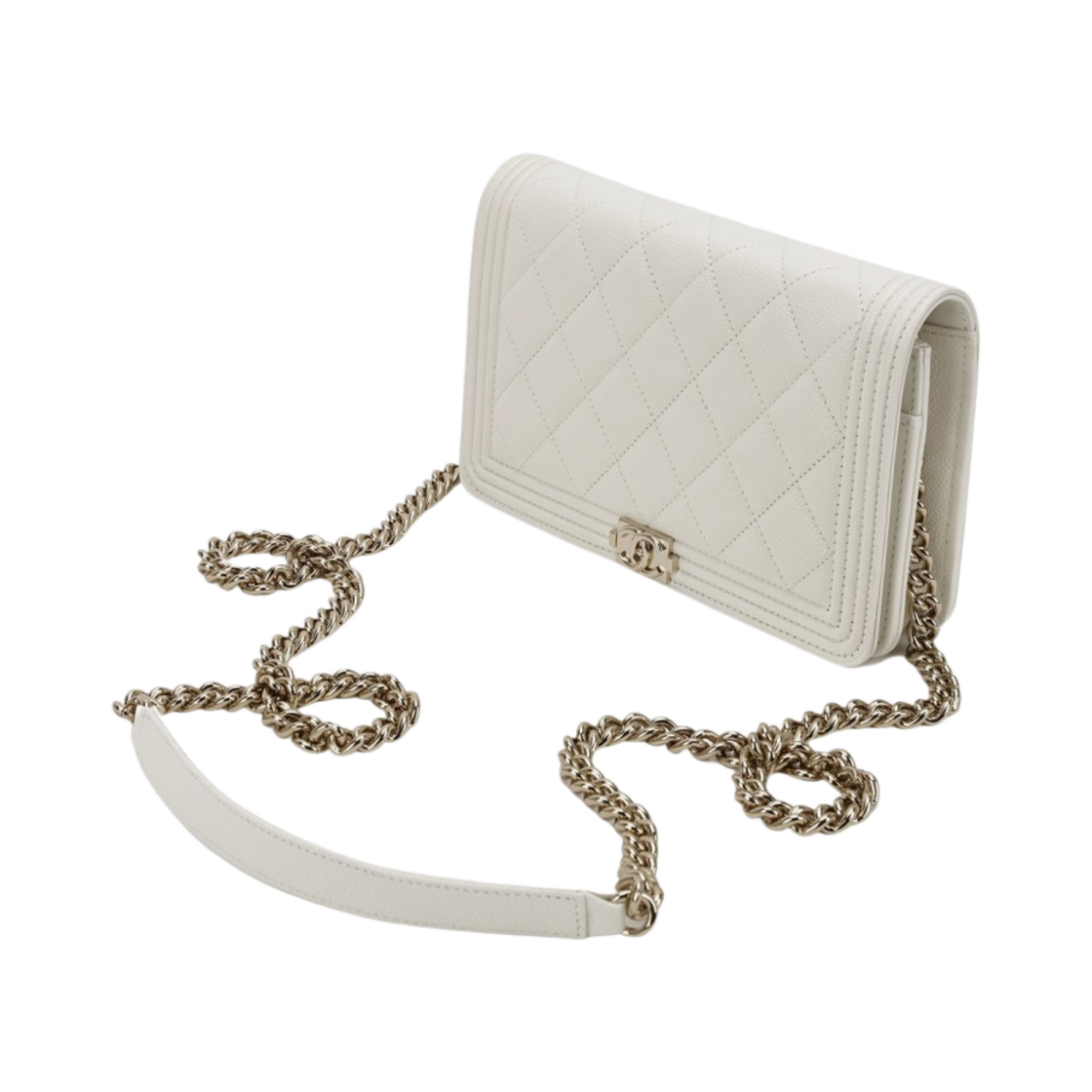 샤넬 보이 샤넬 체인 지갑 그레인드 카프스킨 & 골드 메탈 화이트