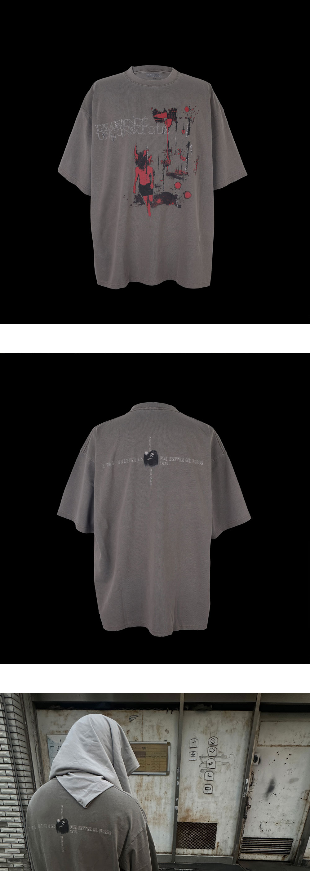 Description Red Veil T-shirt Pigment Dyeing Single Washed DTP PRINTING Fabric Material COTTEN 250G Size Spec (Length / CHEST / Shoulder / Sleeve) 1 SIZE- 75 / 63 / 57.5 / 22 2 SIZE- 78 / 65 / 60.5 / 23 Care 워싱후 수축현상 최소화 되었습니다. 프린팅 제품은 표백제 사용을 금지하며, 건조시 그늘에서 자연 건조를 권장합니다. 워싱 제품에 물빠짐 있을 수 있습니다. 이 현상은 불량이 아닙니다.
