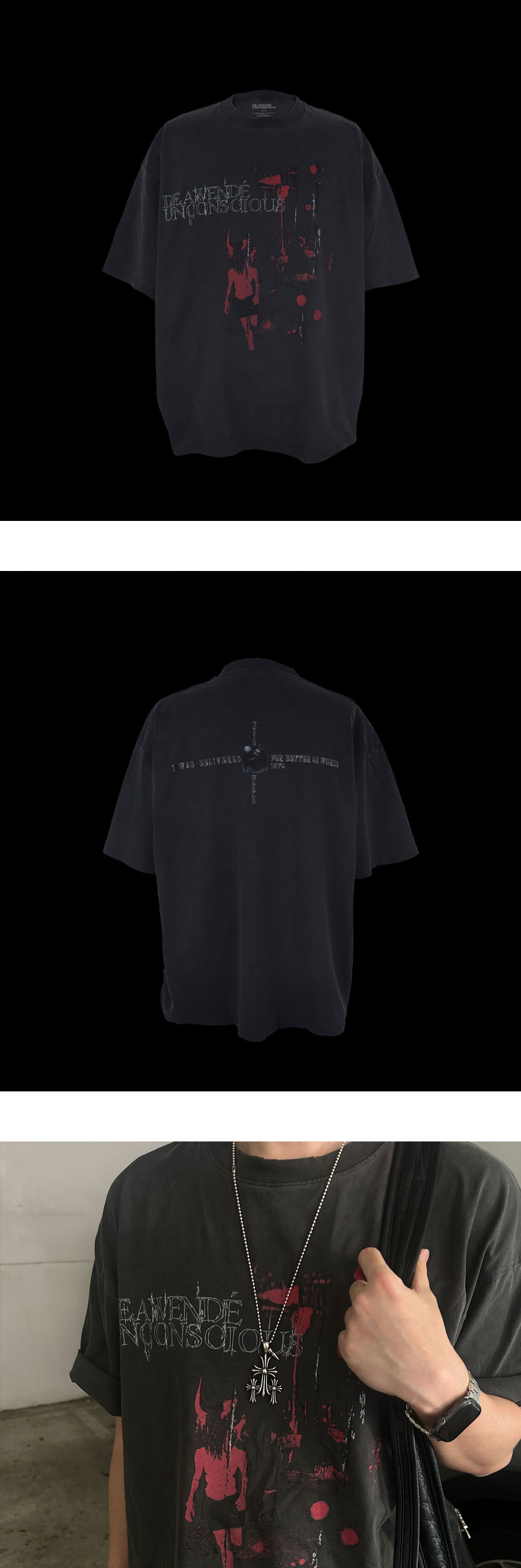 Description Red Veil T-shirt Pigment Dyeing Single Washed DTP PRINTING Fabric Material COTTEN 250G Size Spec (Length / CHEST / Shoulder / Sleeve) 1 SIZE- 75 / 63 / 57.5 / 22 2 SIZE- 78 / 65 / 60.5 / 23 Care 워싱후 수축현상 최소화 되었습니다. 프린팅 제품은 표백제 사용을 금지하며, 건조시 그늘에서 자연 건조를 권장합니다. 워싱 제품에 물빠짐 있을 수 있습니다. 이 현상은 불량이 아닙니다.