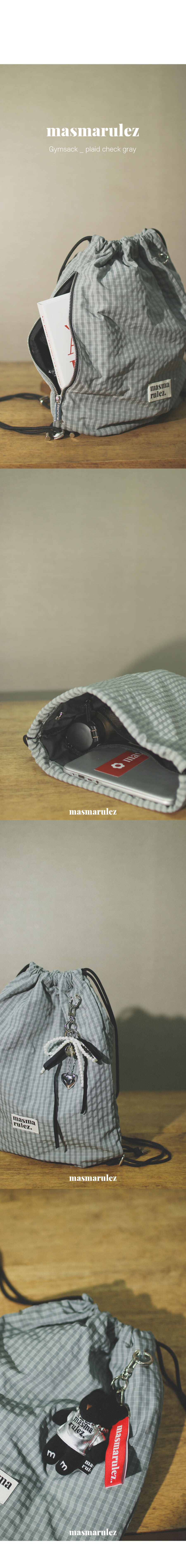 마스마룰즈 짐 색 스트링 백 플레이드 체크 그레이