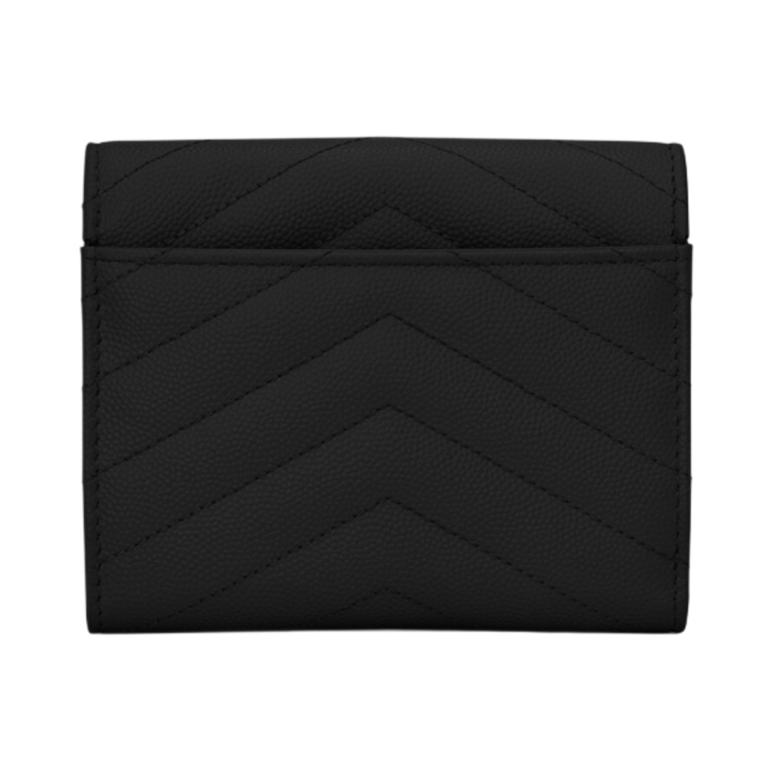 Saint Laurent Cassandre Matelasse Compact Tri-Fold Wallet in Grain de Poudre Embossed Leather Black