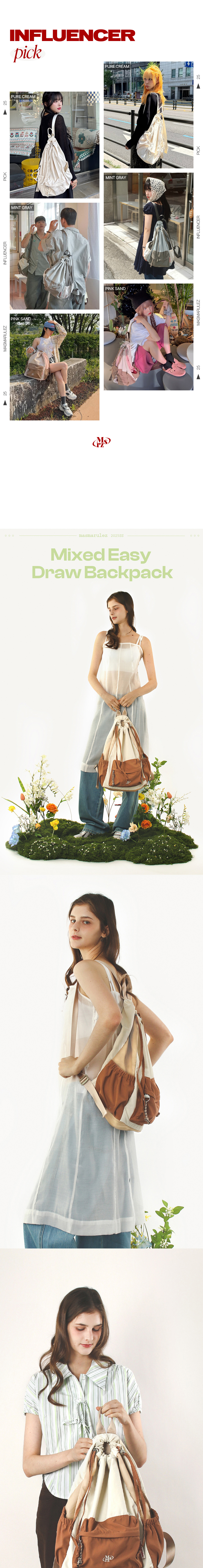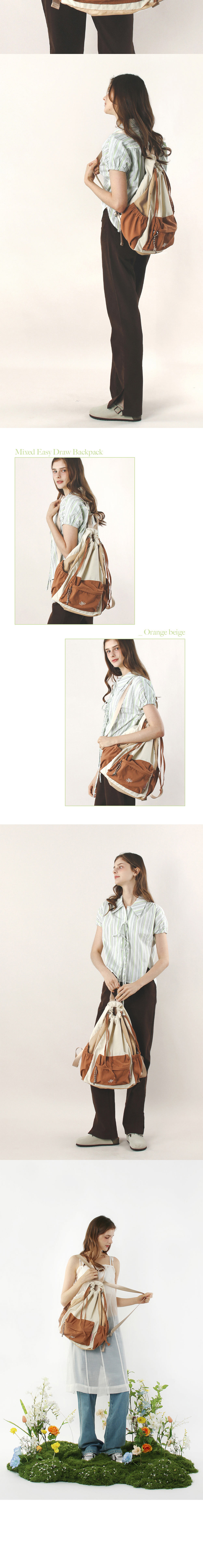 마스마룰즈 믹스드 이지 드로우 백팩 오렌지 베이지