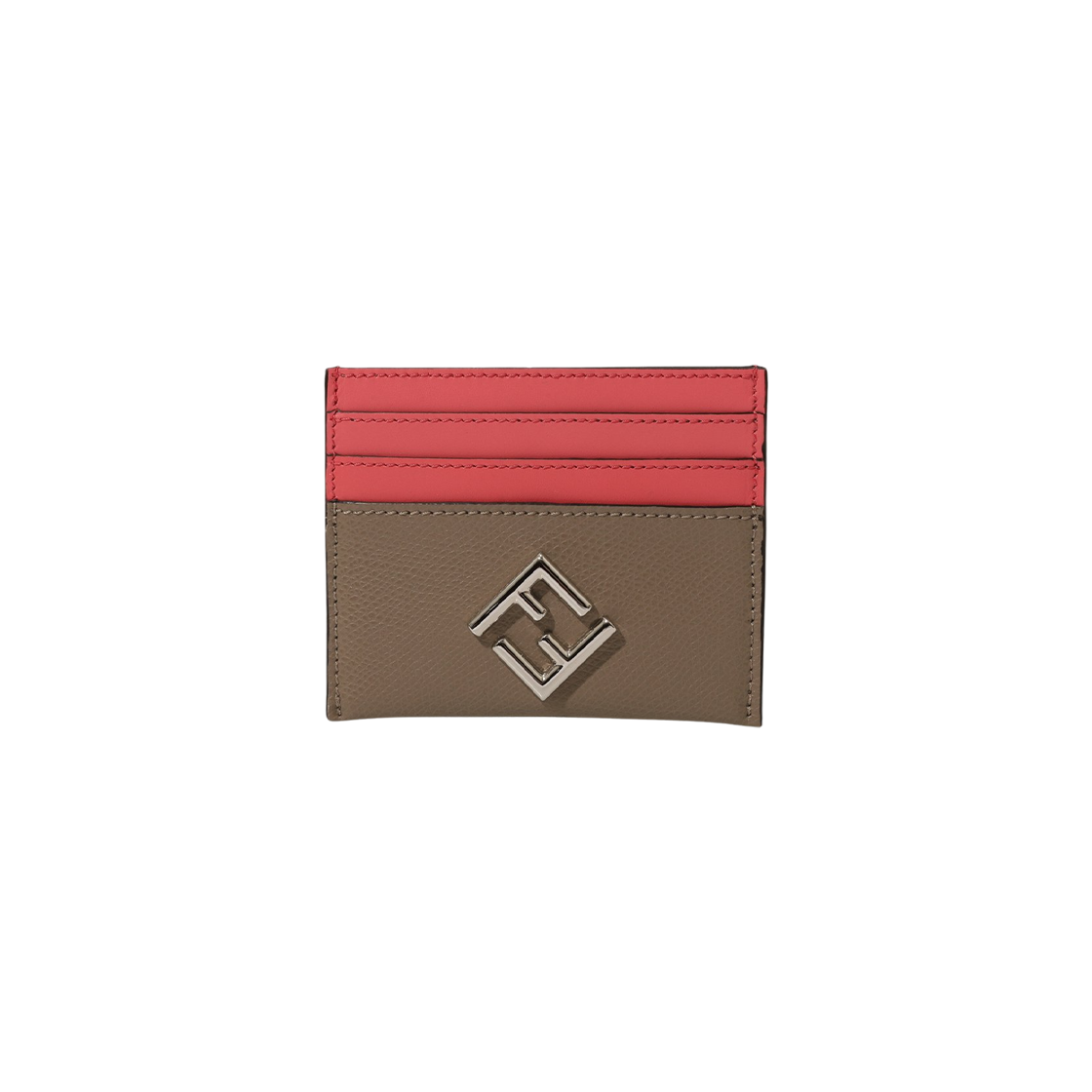 Fendi FF Diamonds Two-Tone Leather Flat Card Case Pink Dove Grey