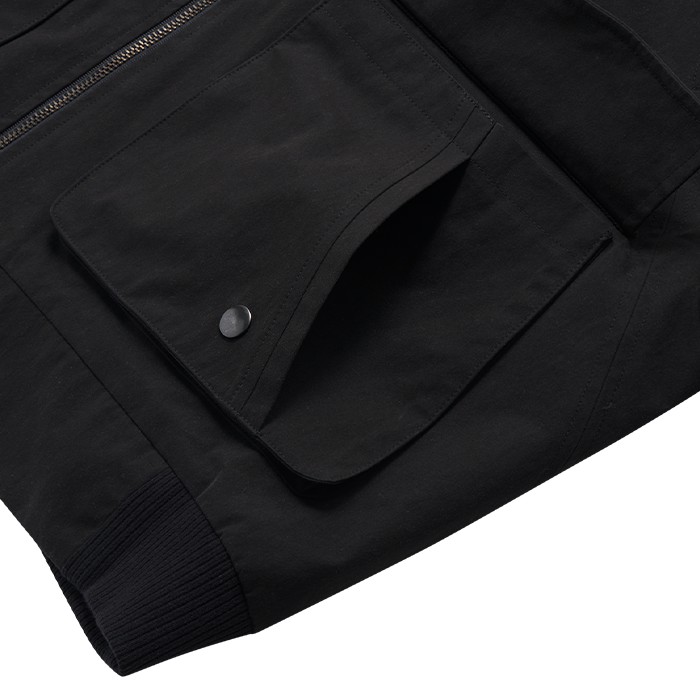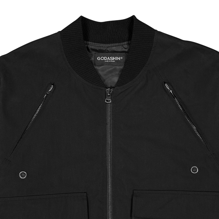 - Cropped Regular Fit - 투웨이 지퍼 사용 - 래글런 라인의 지퍼 포켓과 전면부 이중 구조 포켓으로 높은 실용성과 수납 능력 (소매 페이크 포켓) - 전면 아일렛, 후면 다트 디테일