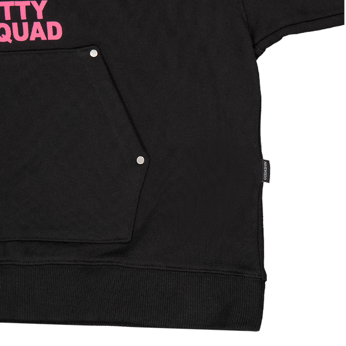 Comment 시간이 지나도 빛을 잃지 않는 뮤지션의 음악적 유산을 재해석 보았습니다. 그들이 남긴 멜로디는 사라지지 않고 세대를 넘어 많은 이들의 마음 속에서 오래 울려 퍼집니다. 영원히 기억되는 그들의 멜로디처럼 자유롭게 연주하며 감동을 전하는 ‘키티 락 스쿼드’의 모습을 담았습니다. - Cropped Loose Fit - 전면 프린팅 - 캥거루 주머니 원형 리벳 디테일