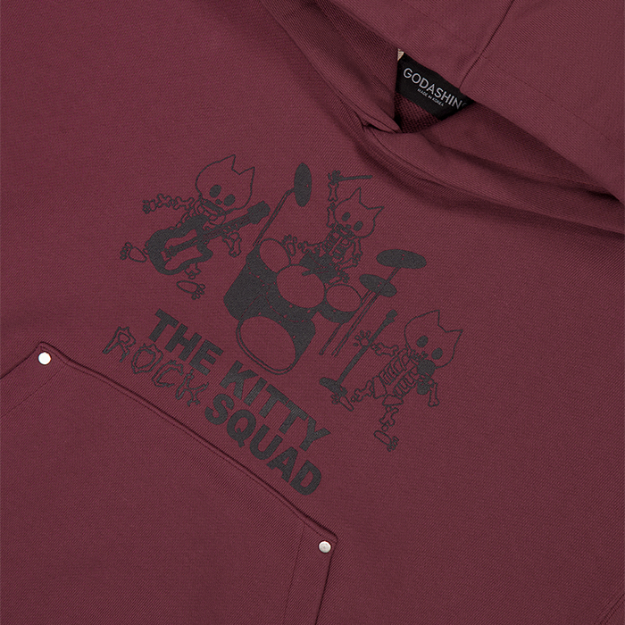 Comment 시간이 지나도 빛을 잃지 않는 뮤지션의 음악적 유산을 재해석 보았습니다. 그들이 남긴 멜로디는 사라지지 않고 세대를 넘어 많은 이들의 마음 속에서 오래 울려 퍼집니다. 영원히 기억되는 그들의 멜로디처럼 자유롭게 연주하며 감동을 전하는 ‘키티 락 스쿼드’의 모습을 담았습니다. - Cropped Loose Fit - 전면 프린팅 - 캥거루 주머니 원형 리벳 디테일