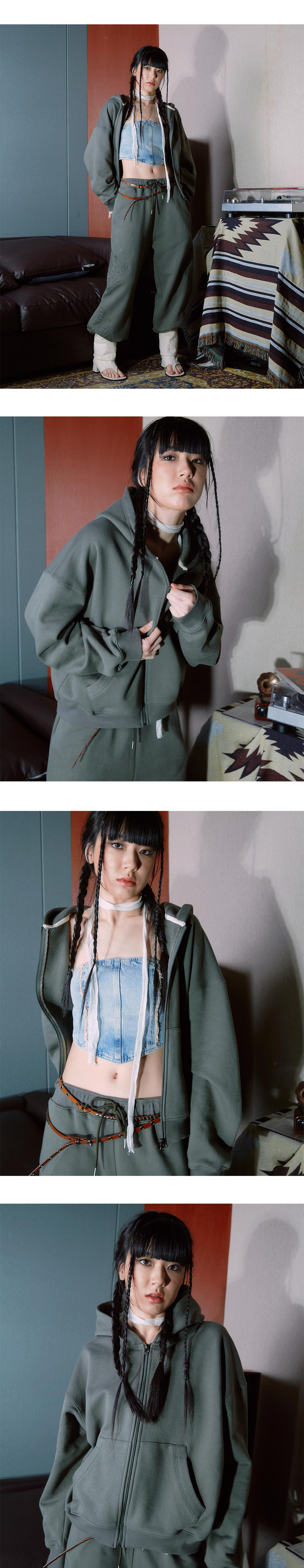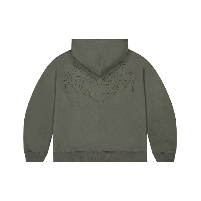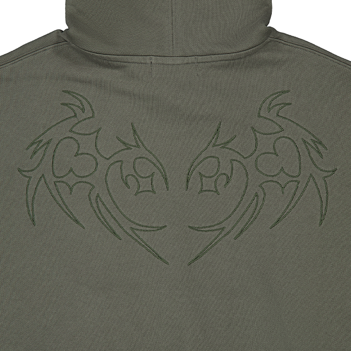 Comment Gazeroshin, 『악마 고양이』 만화에서 파생된 악마의 날개 그래픽입니다. 둥글고 따뜻한 느낌의 하트 모양을 갖고 있지만 그와 반대로 뾰족하게 뻗고 있는 가시 모양도 갖고 있습니다. 영원히 사랑할 테지만 사랑하지 않을 것임을 다짐하는 악마 고양이를 상징하기도 합니다. - Cropped Loose Fit - 후면 자수 - 제품 내부 넥라인 아이보리 생지 바이어스 테이프 사용