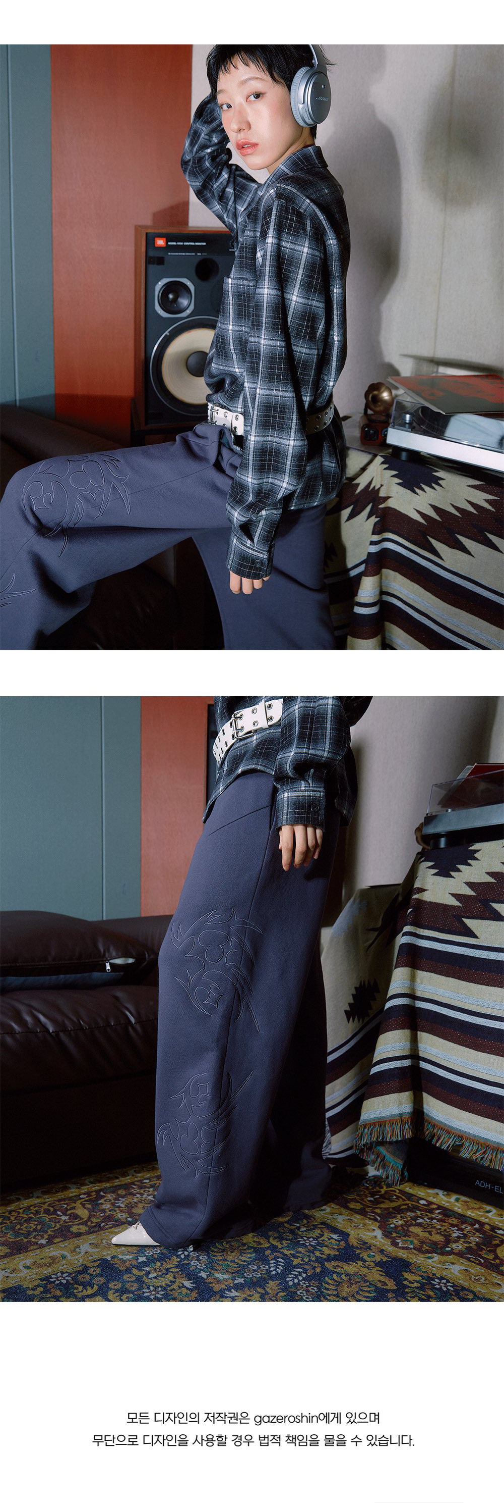 Comment Gazeroshin, 『악마 고양이』 만화에서 파생된 악마의 날개 그래픽입니다. 둥글고 따뜻한 느낌의 하트 모양을 갖고 있지만 그와 반대로 뾰족하게 뻗고 있는 가시 모양도 갖고 있습니다. 영원히 사랑할 테지만 사랑하지 않을 것임을 다짐하는 악마 고양이를 상징하기도 합니다. - Wide Fit - 측면 자수 - 밑단 스트링으로 다양한 실루엣 연출 가능