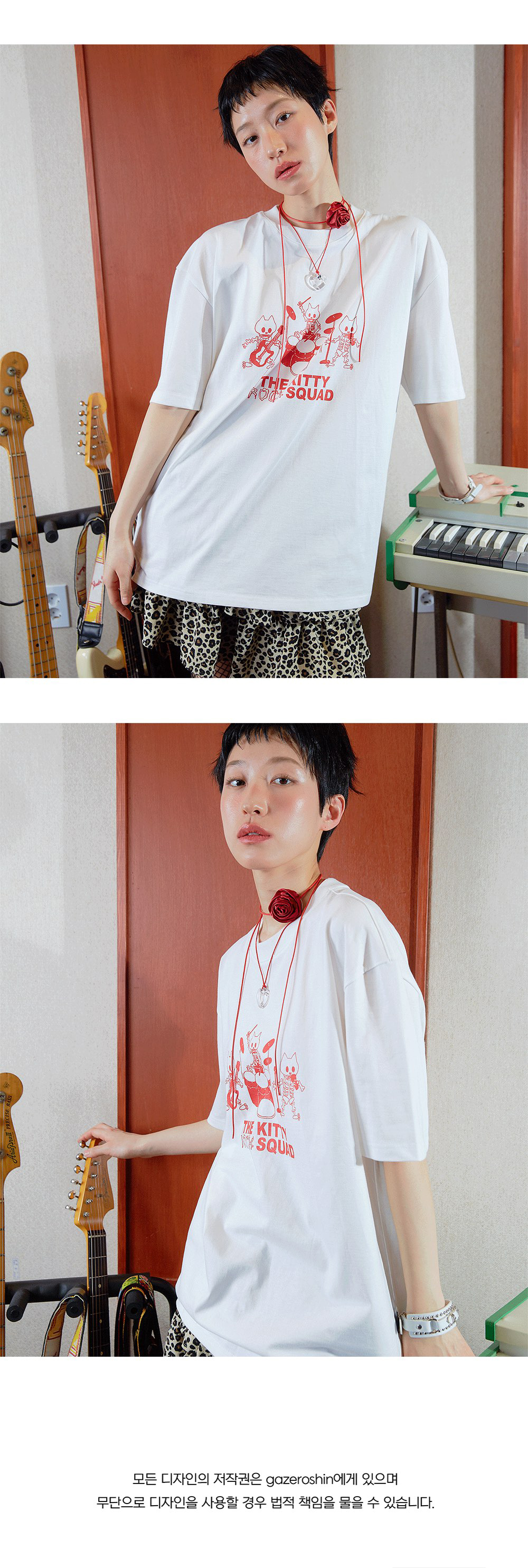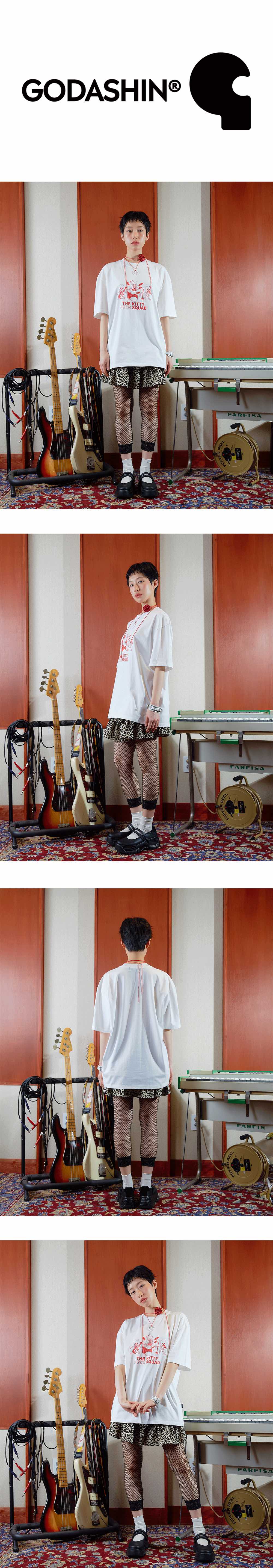 Comment 시간이 지나도 빛을 잃지 않는 뮤지션의 음악적 유산을 재해석해 보았습니다. 그들이 남긴 멜로디는 사라지지 않고 세대를 넘어 많은 이들의 마음 속에서 오래 울려 퍼집니다. 영원히 기억되는 그들의 멜로디처럼 자유롭게 연주하며 감동을 전하는 ‘키티 락 스쿼드’의 모습을 담았습니다. - Loose Fit - 전면 프린팅