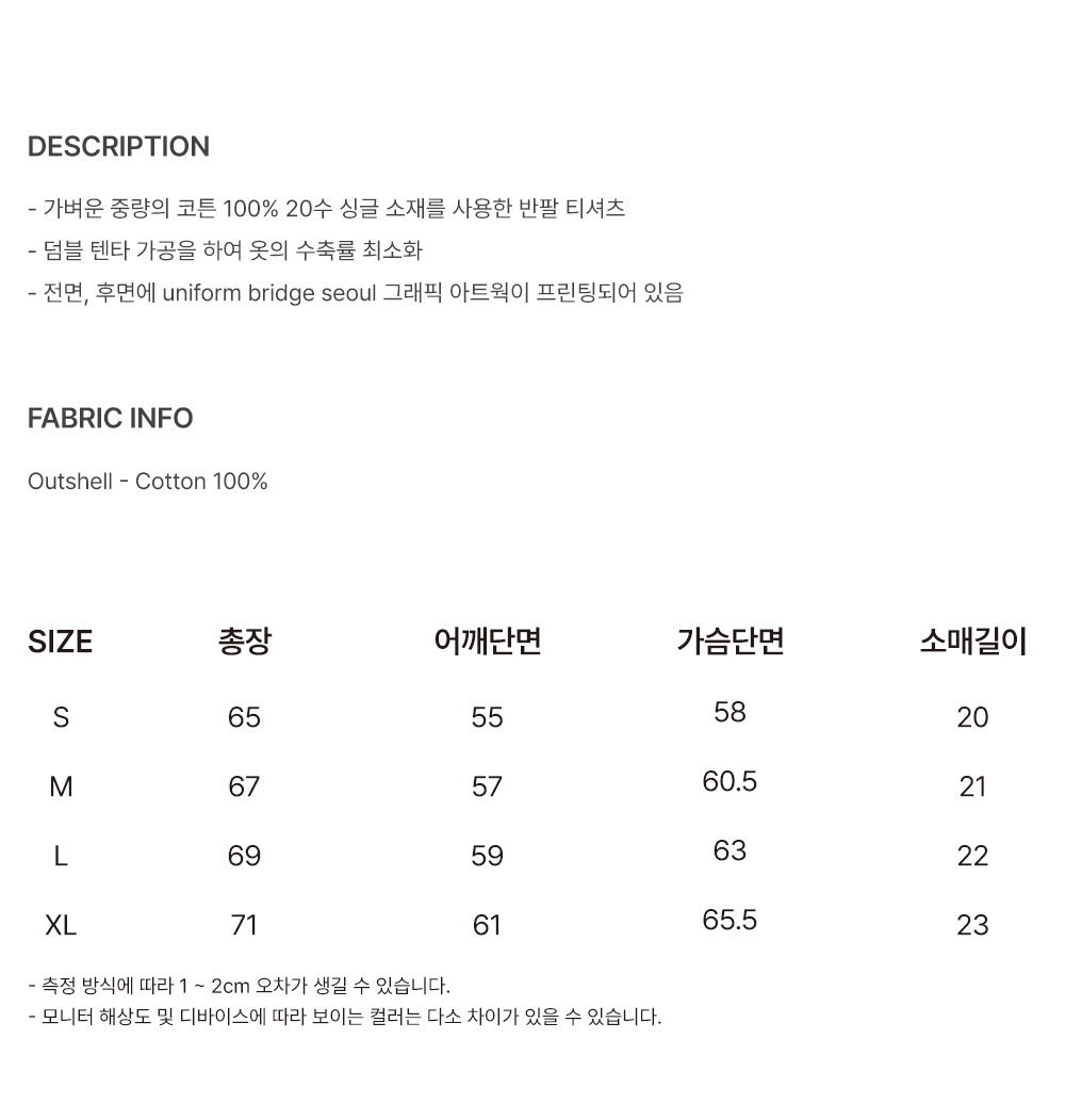 유니폼브릿지 서울 S/S 티셔츠 블루