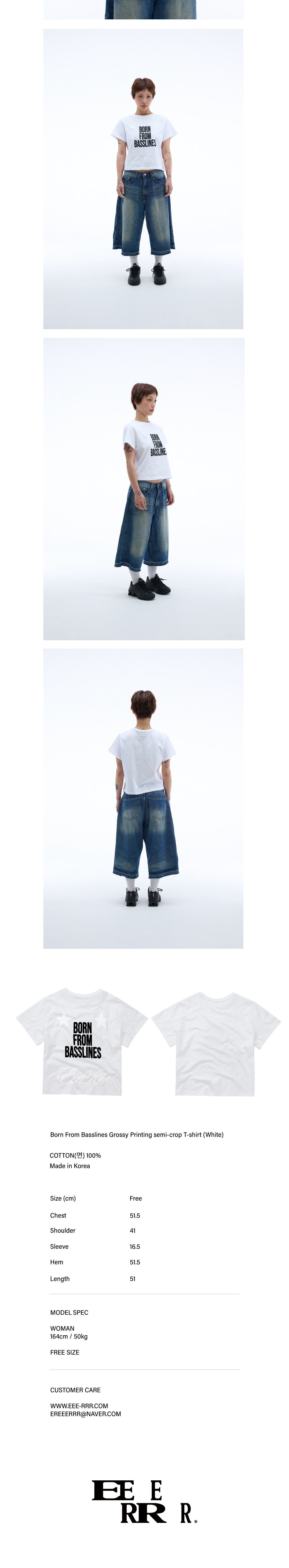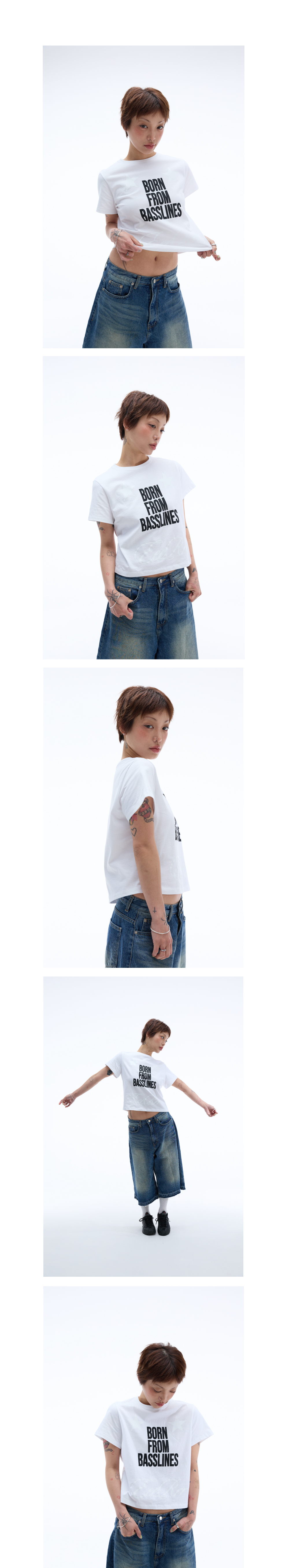 ER Born From Basslines Grossy Printing semi-crop T-shirt (White)