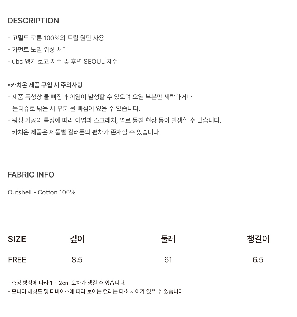 유니폼 브릿지 엠브로이더리 서울 버킷햇 네이비