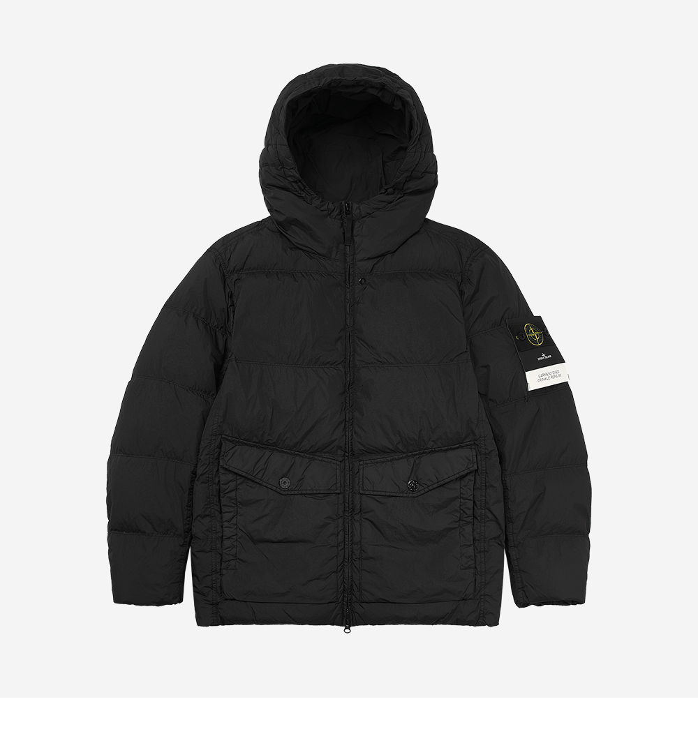 Stone Island 4100011 Crinkle Reps NY Recycled Nylon Hooded Down Jacket Black - 25FW