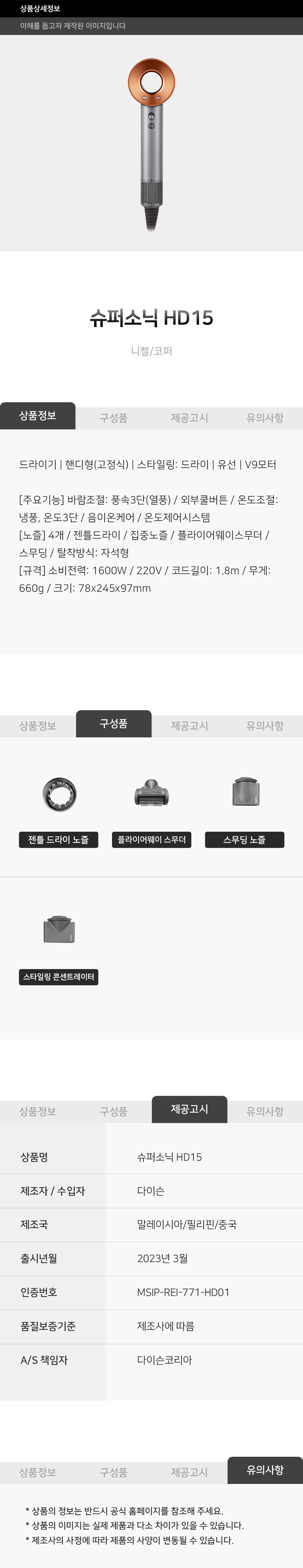 다이슨 슈퍼소닉 헤어드라이어 HD15 (니켈/코퍼)