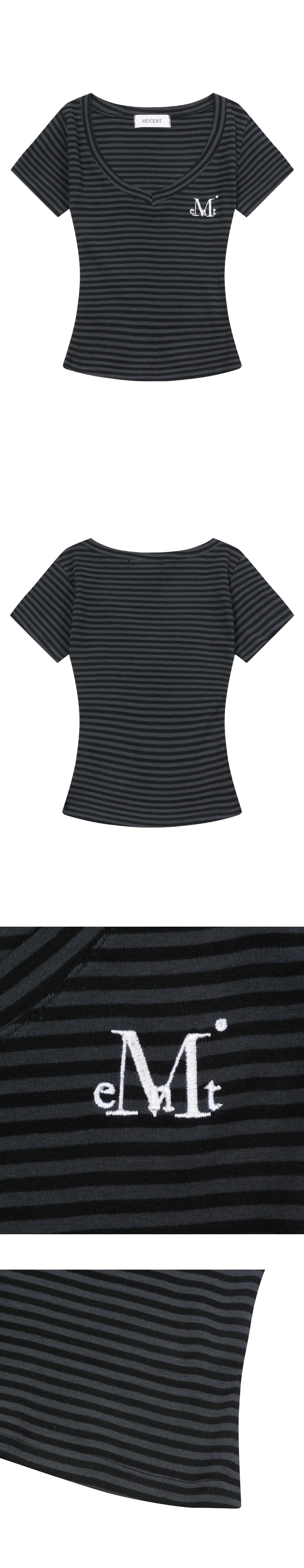 무센트 엠마 브이넥 스트라이프 반팔 티 블랙-차콜