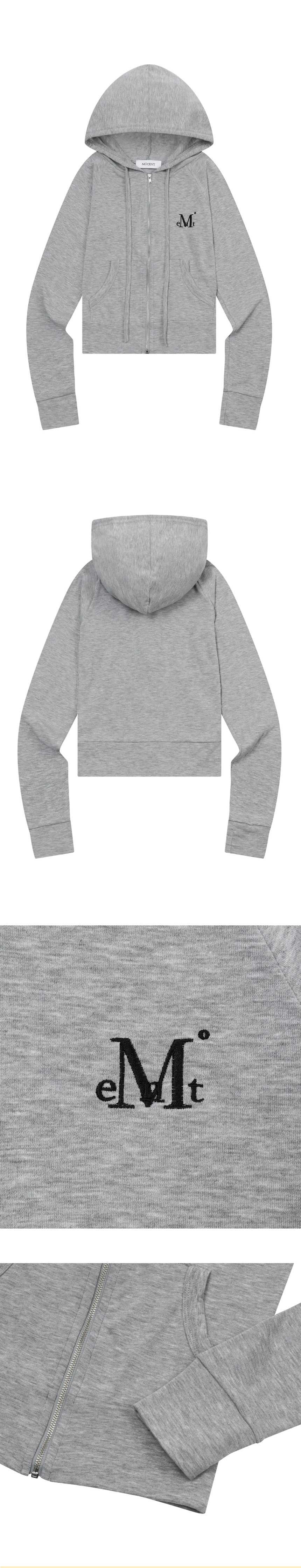 무센트 라잇업 슬림핏 크롭 후드 집업 그레이