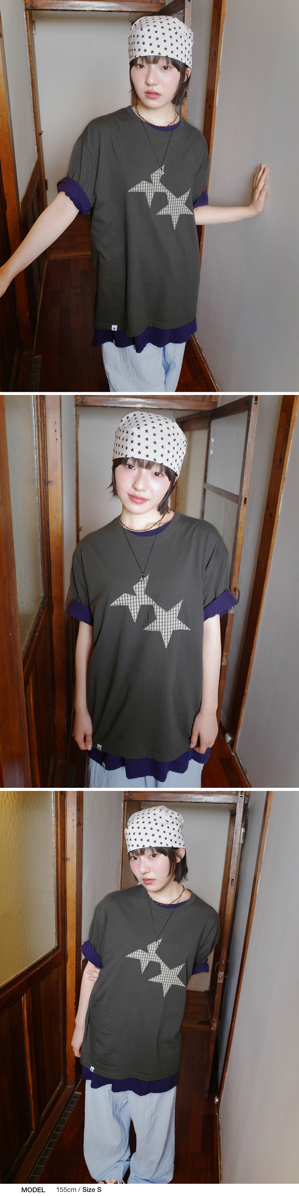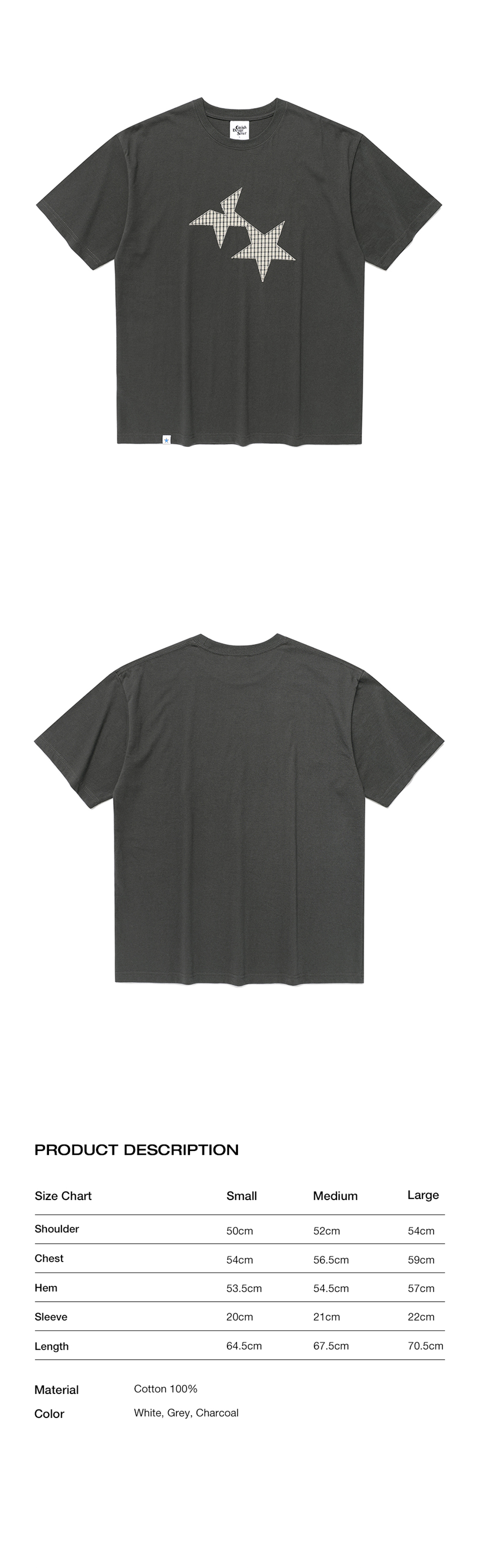 카비시 트윈 스타 체크 아플리케 숏슬리브 티셔츠 차콜