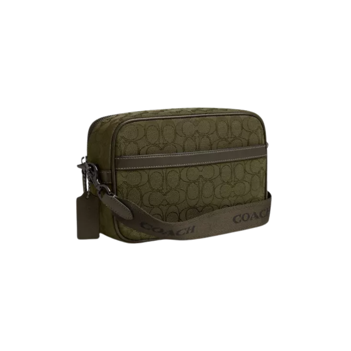 코치 테오 시그니쳐 자카드 카메라백 올리브 드랩 카키