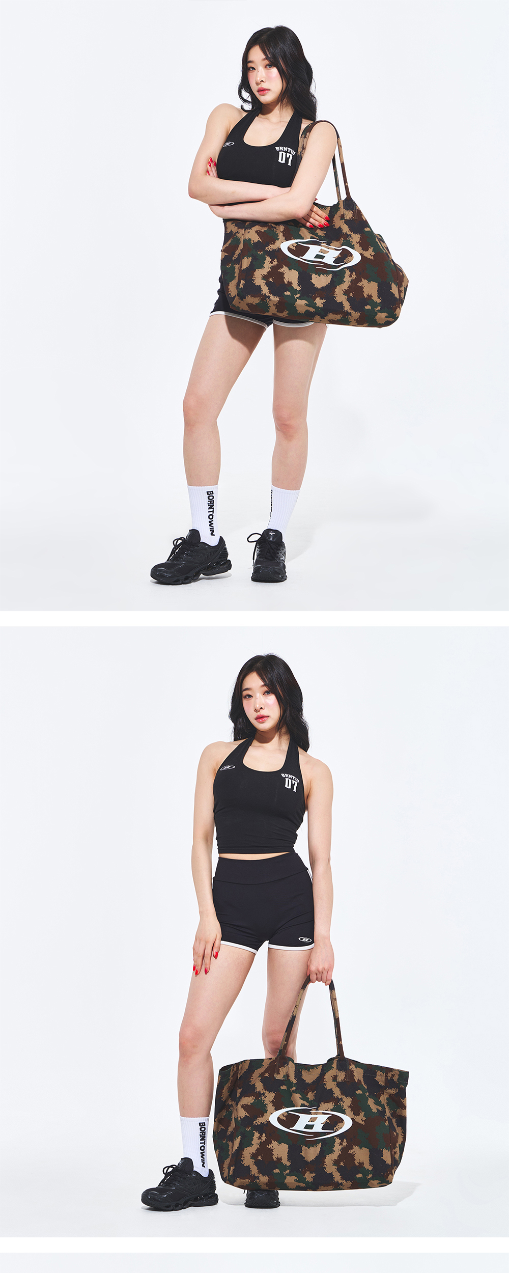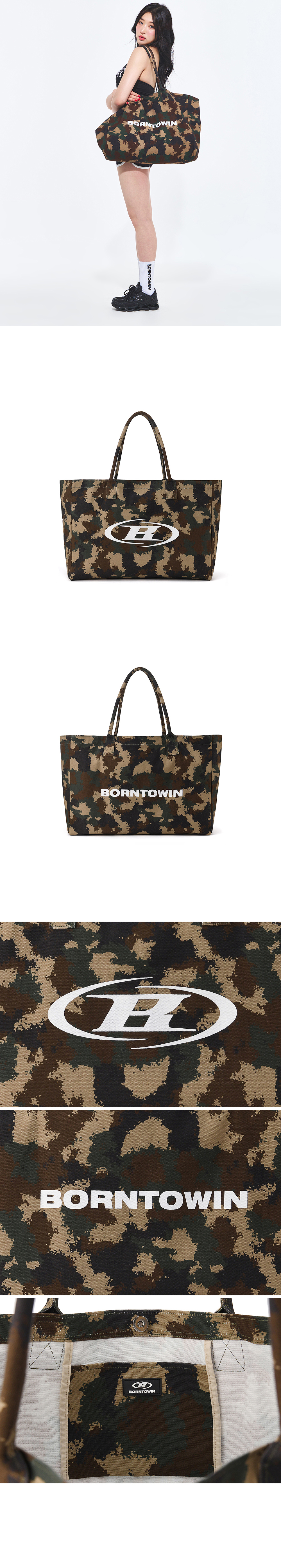 [DETAILS] * 심볼 B 로고 쇼퍼백 - 내구성 좋은 캔버스 원단 사용 - 외부 로고 포인트 - 자석 스냅 버튼 - 내부 미니포켓 Material : Cotton 100% Fitting : DB F Size, 171cm, 57kg