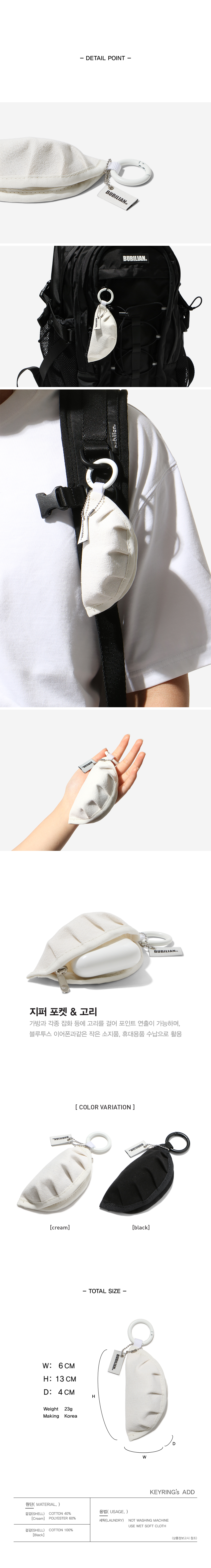 버빌리안 손만두 파우치 키링 크림