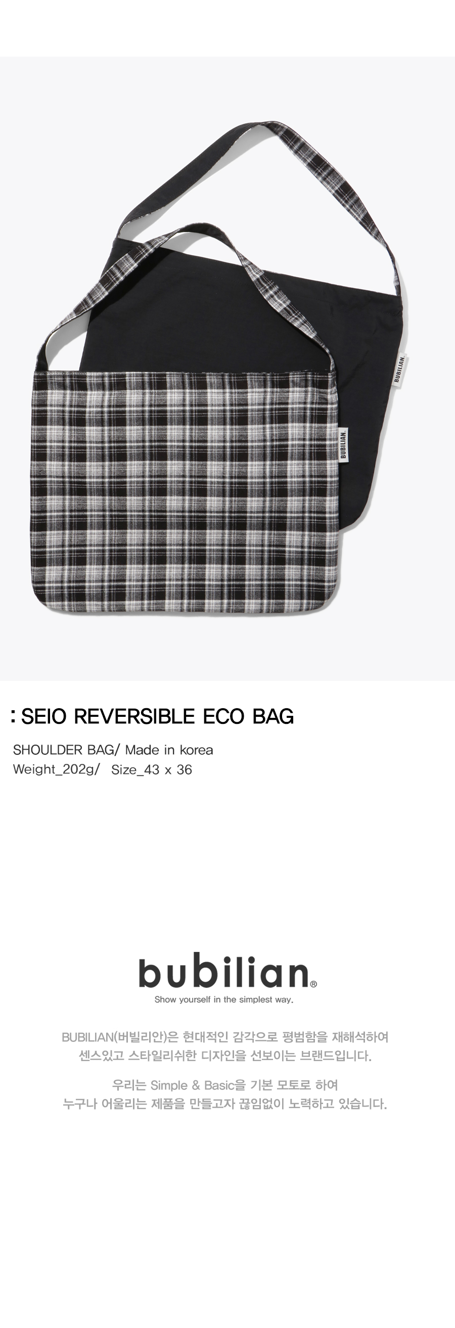 버빌리안 시오 리버서블 에코백 블랙체크&블랙