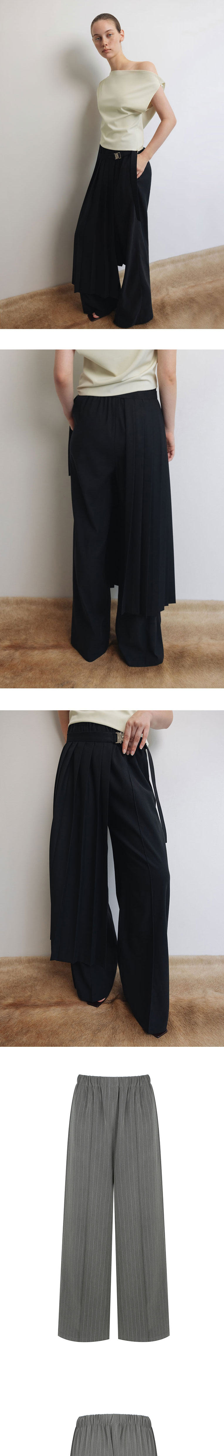 레하 여성 트레 와이드 레그 팬츠 그레이 스트라이프