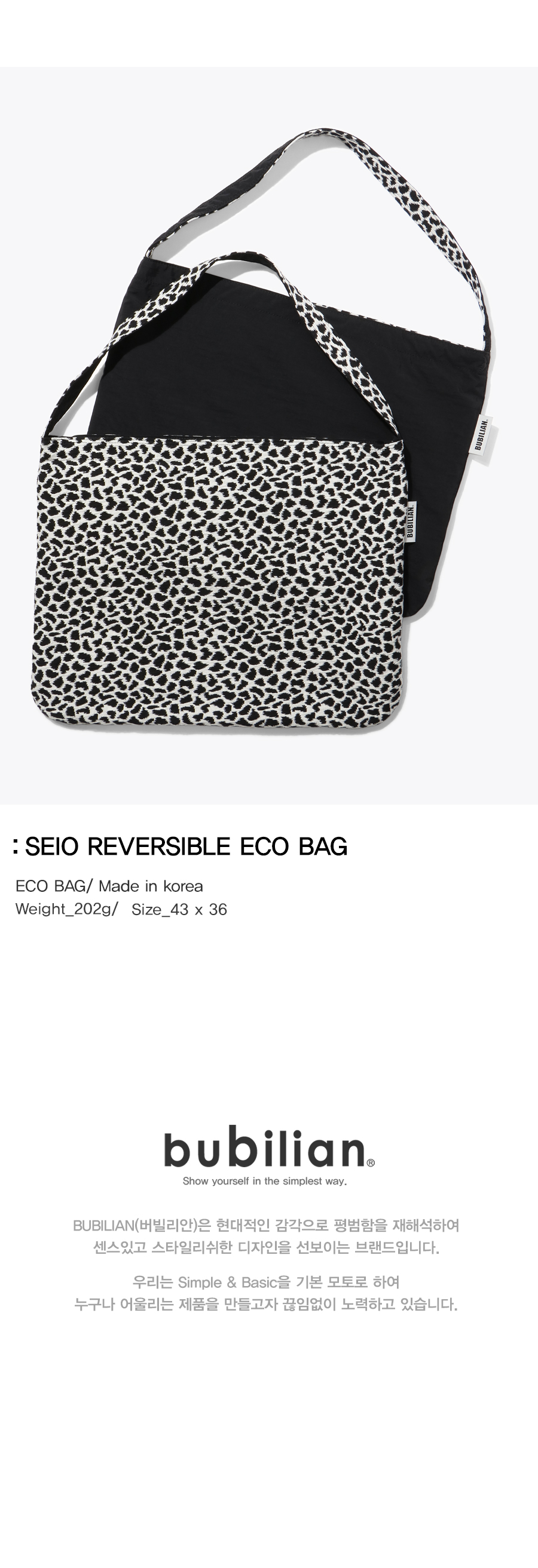 버빌리안 시오 리버서블 에코백 숏블랙호피&블랙