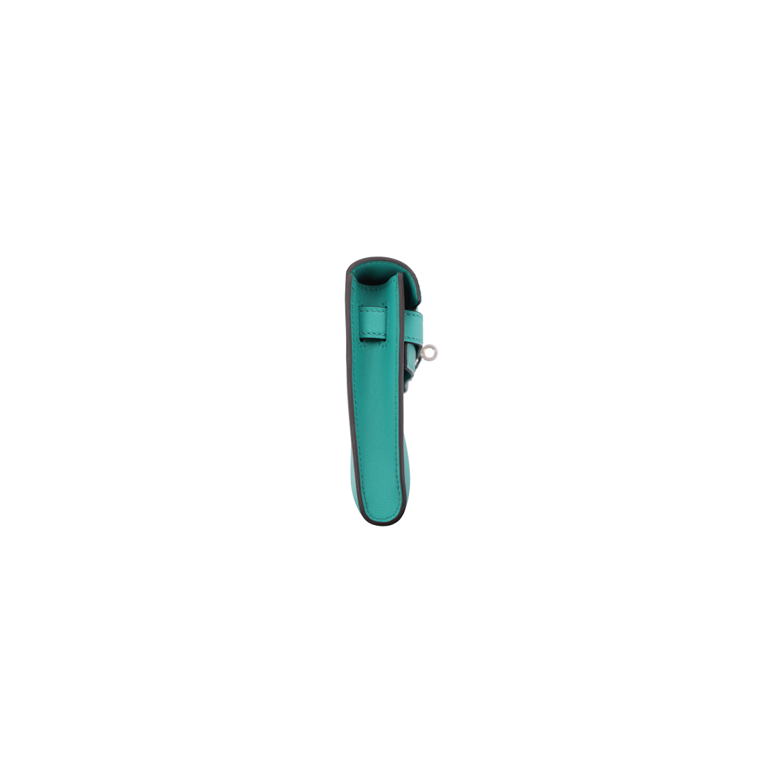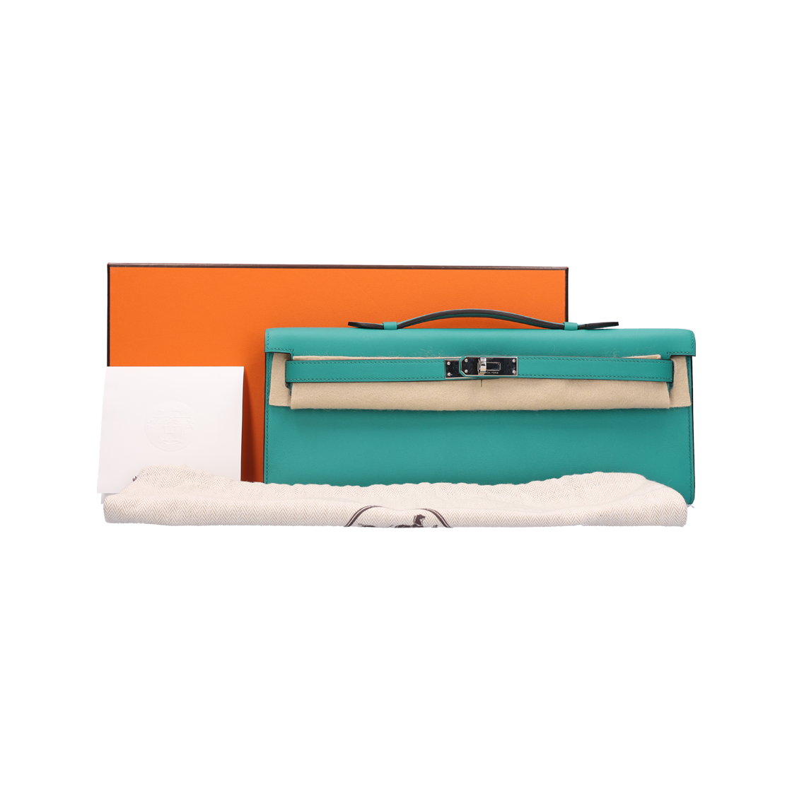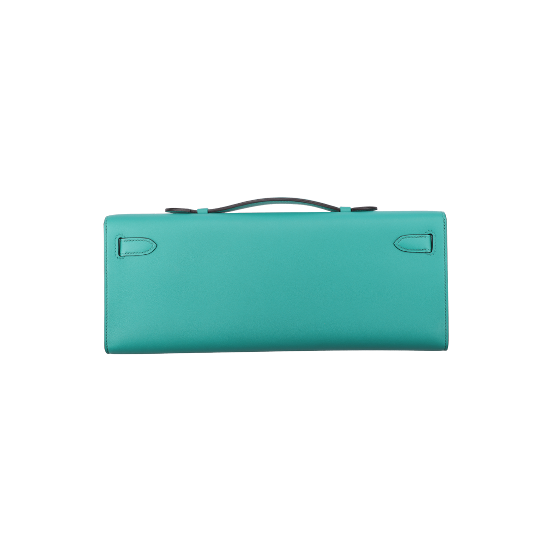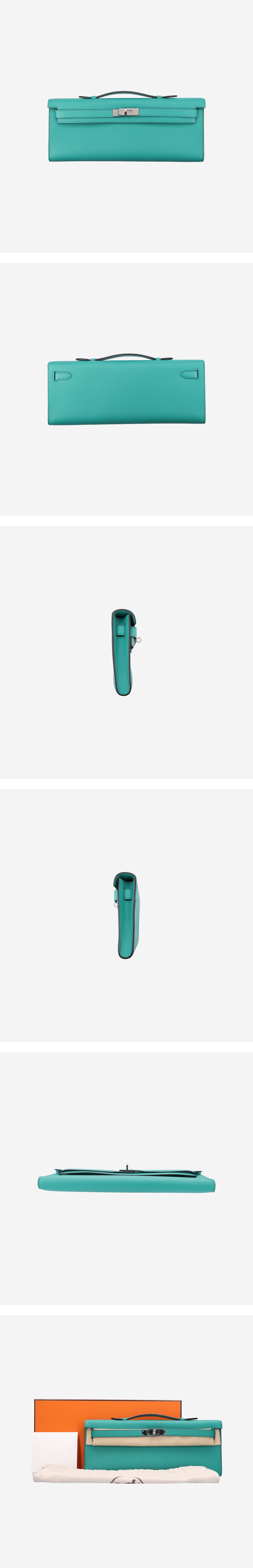 Hermes Kelly Cut Clutch Bag Swift Blue Paon Palladium Hardware X Stamp